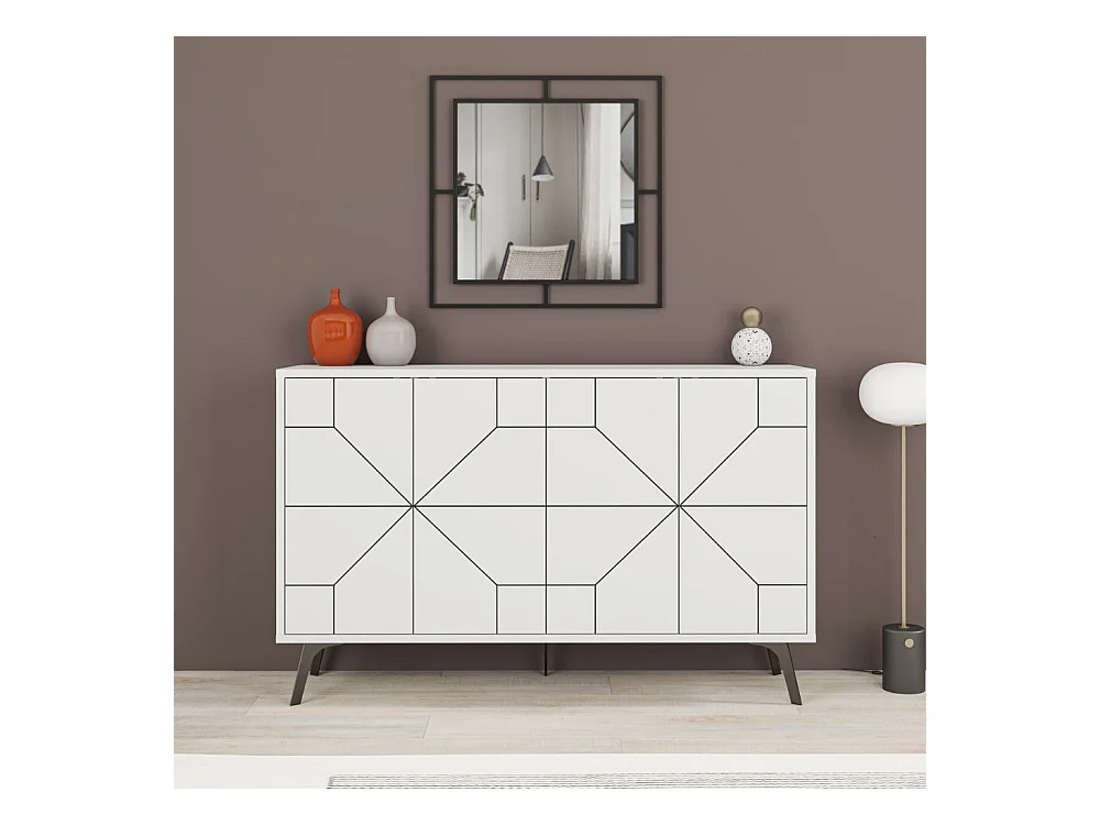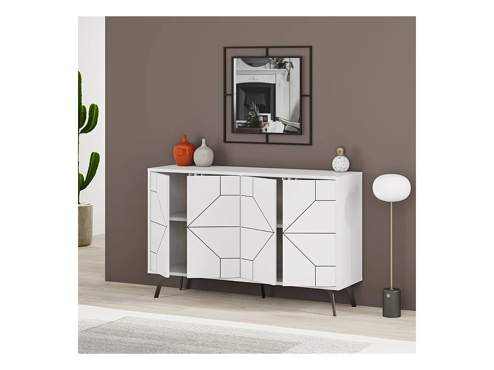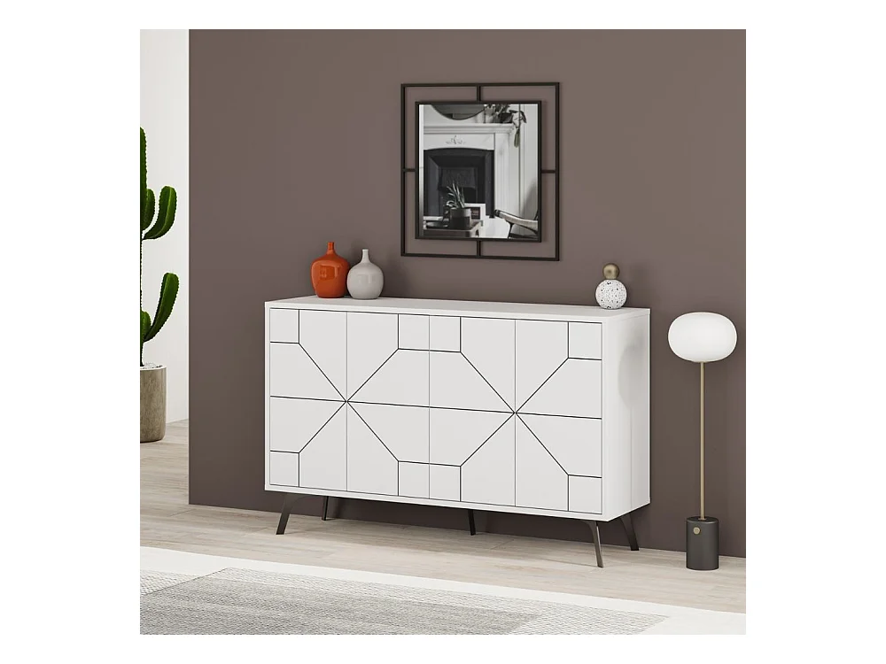 Madia 4 ante bianco con disegno geometrico Dune 123x35x77,4