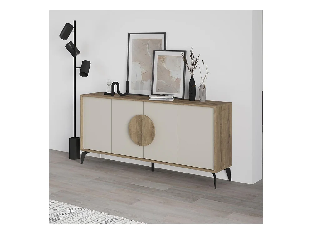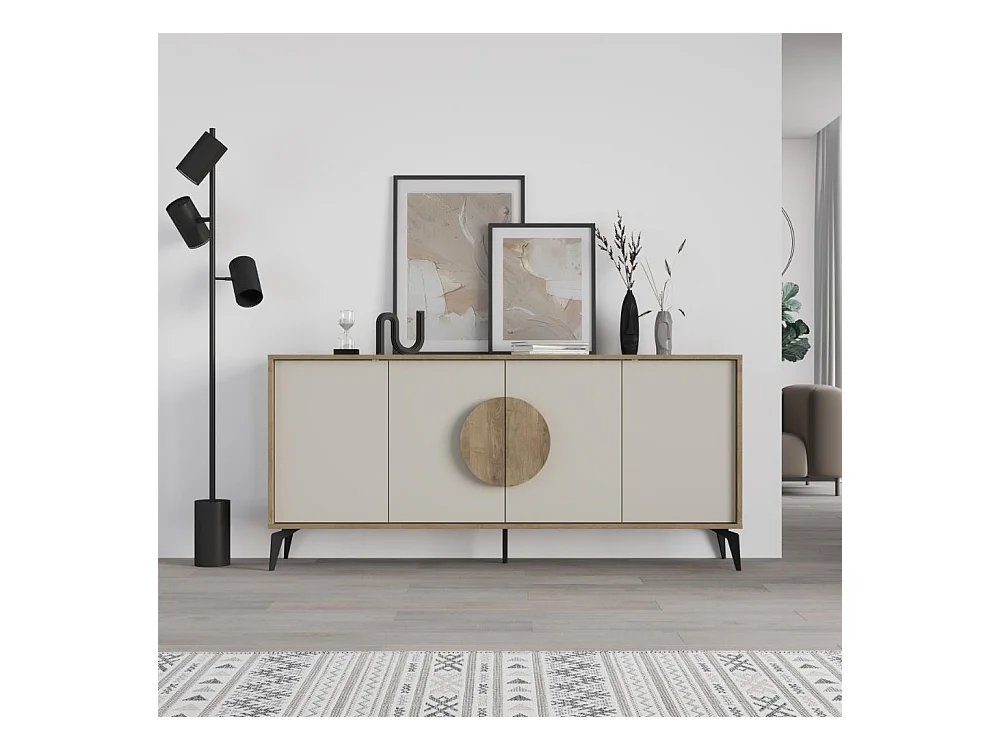 Madia Jana 4 Ante colore cashmere con intagli geometrici maniglie e piedini Oro – Eleganza e Funzionalità per il Tuo Living