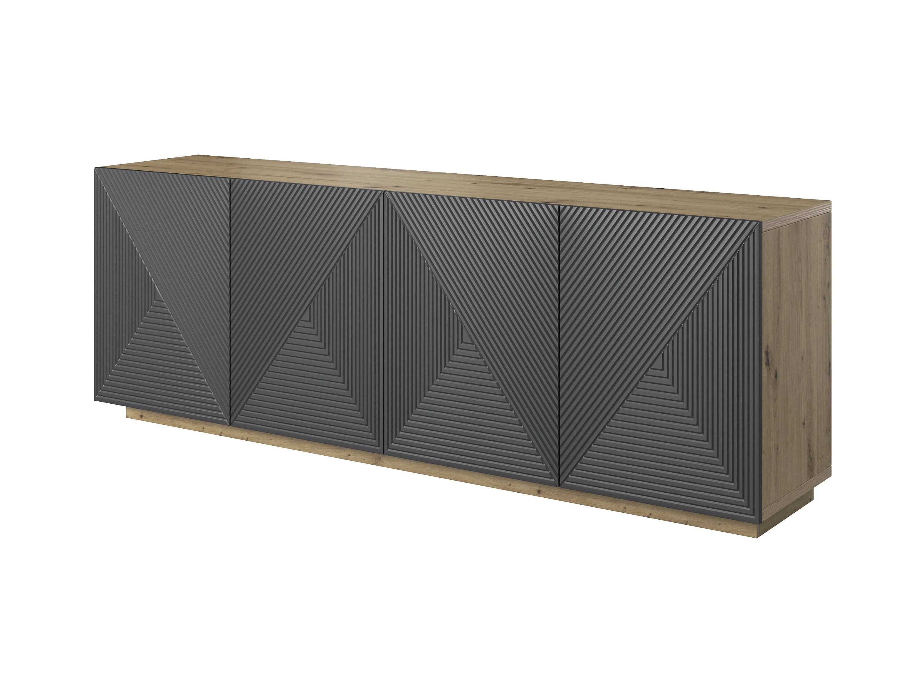Credenza Oscar, Madia da cucina a 4 ante, Buffet da soggiorno, 100% Made in Italy, cm 200x43h86, Ardesia