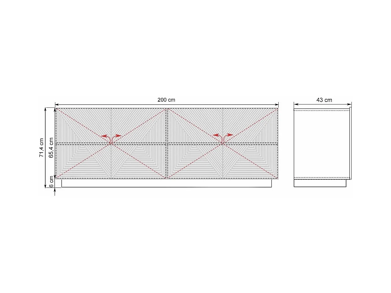 Madia 4 ante in legno laminato con piede in metallo 200x43 cm