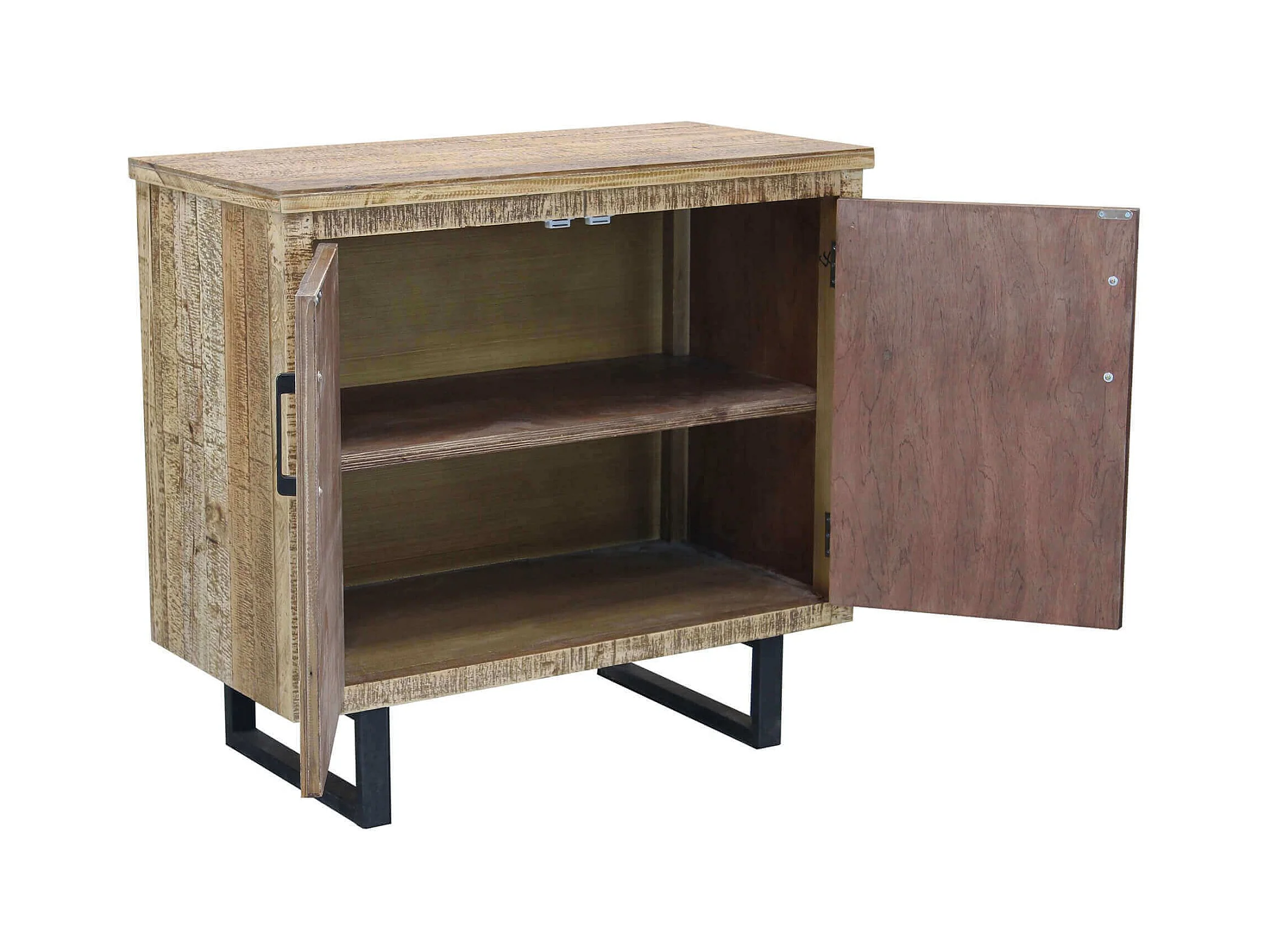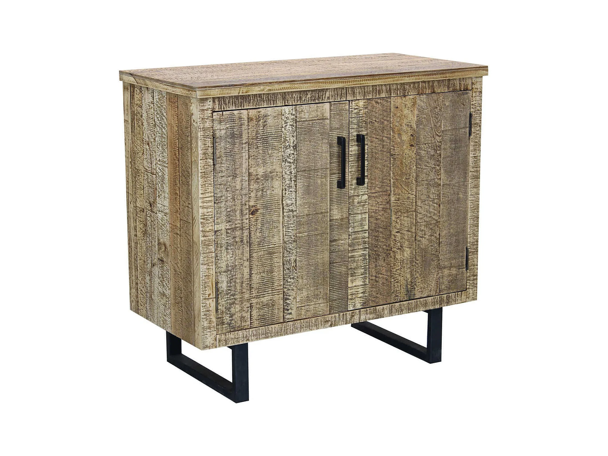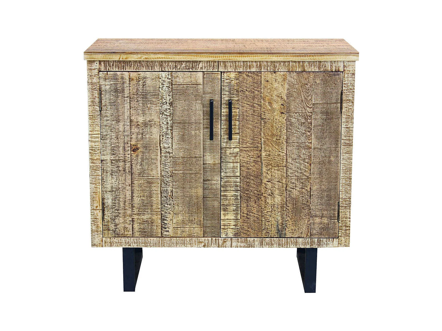 MilaniHome.it - Mobile con decoro sbiancato con 2 ante in legno di mango con struttura in ferro cm 90x40x176 hdi coloreMarrone