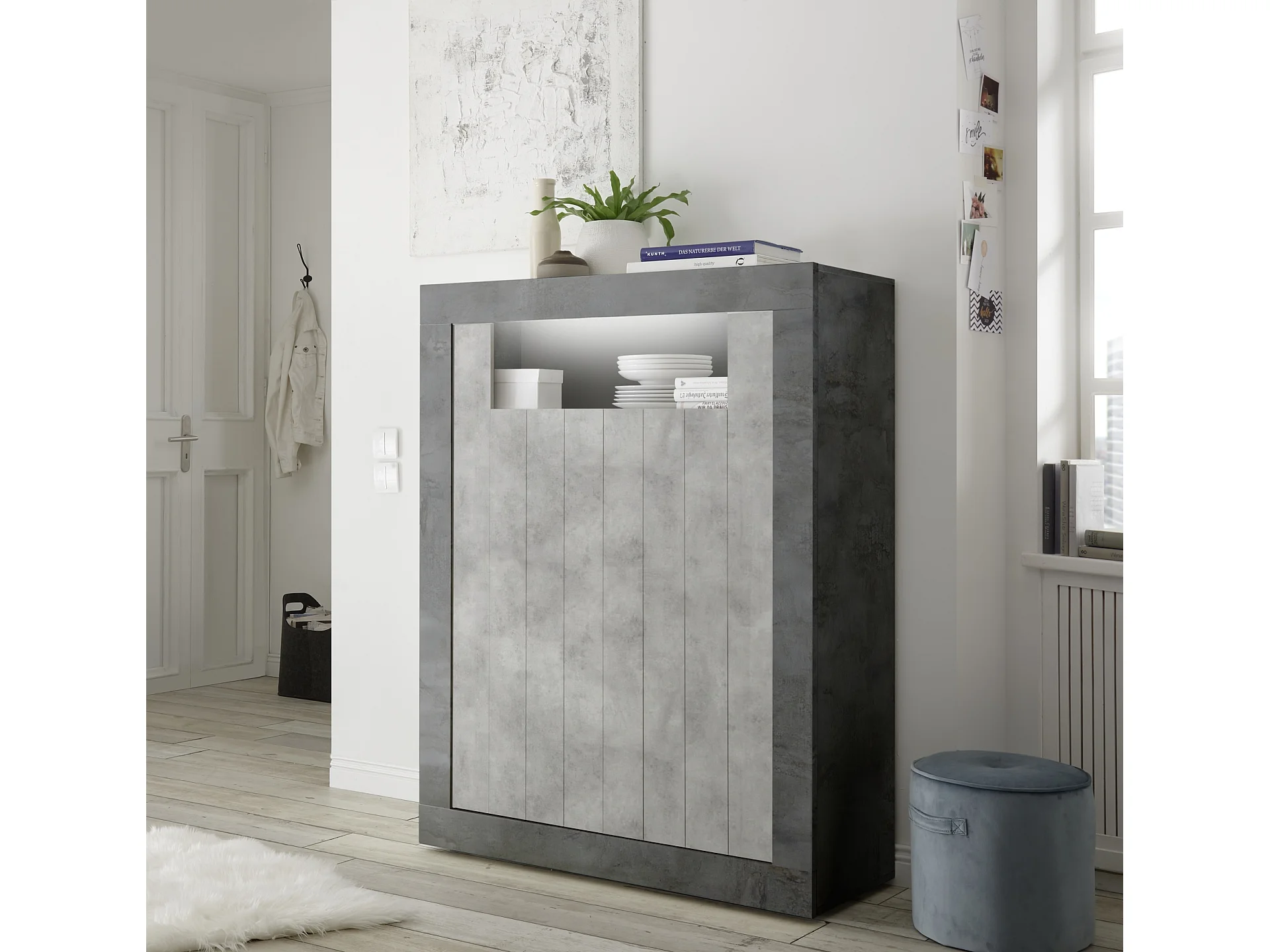 Madia alta per soggiorno con due ante design moderno 110x144 ML48 ossido e cemento