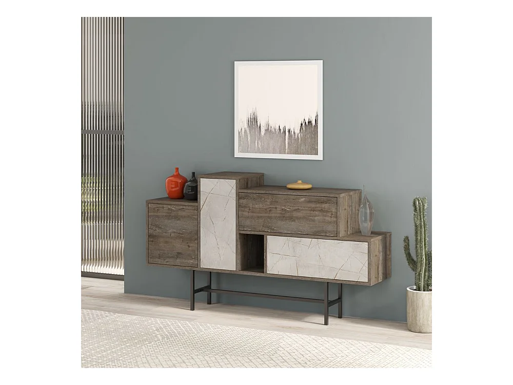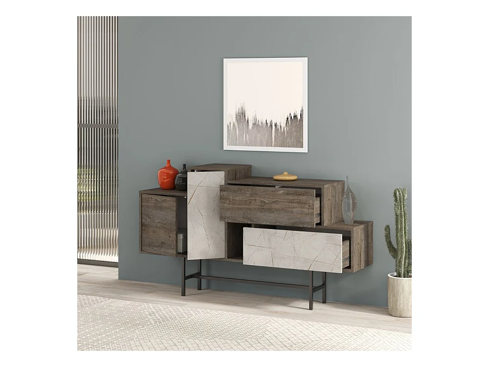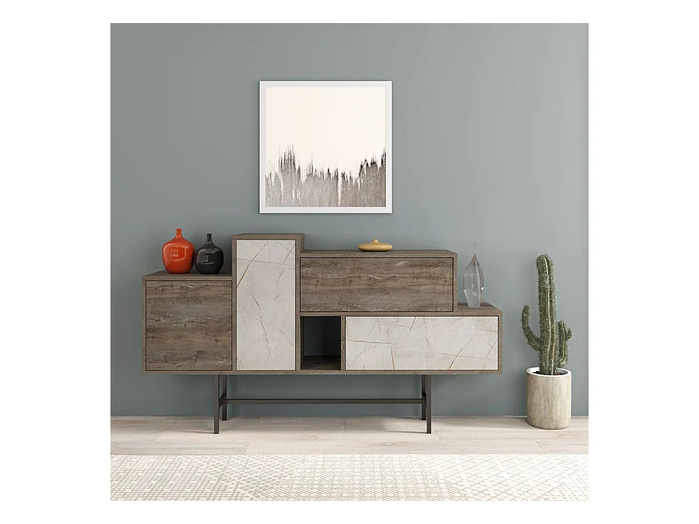 Madia con ante e cassetti effetto marmo bianco Hermes 160 colore dark coffee