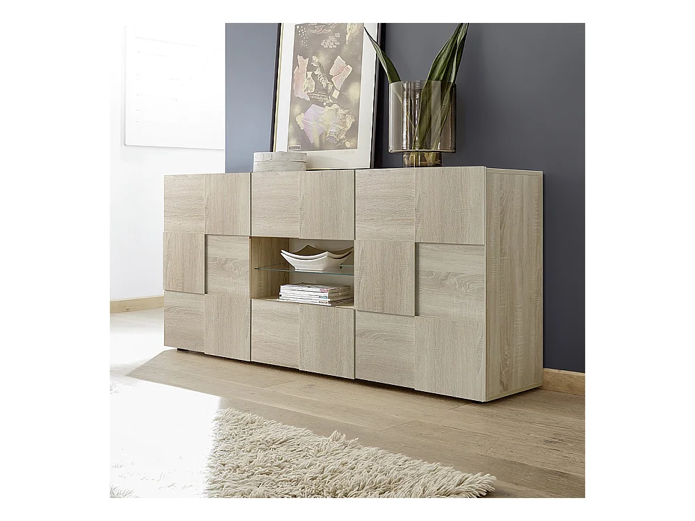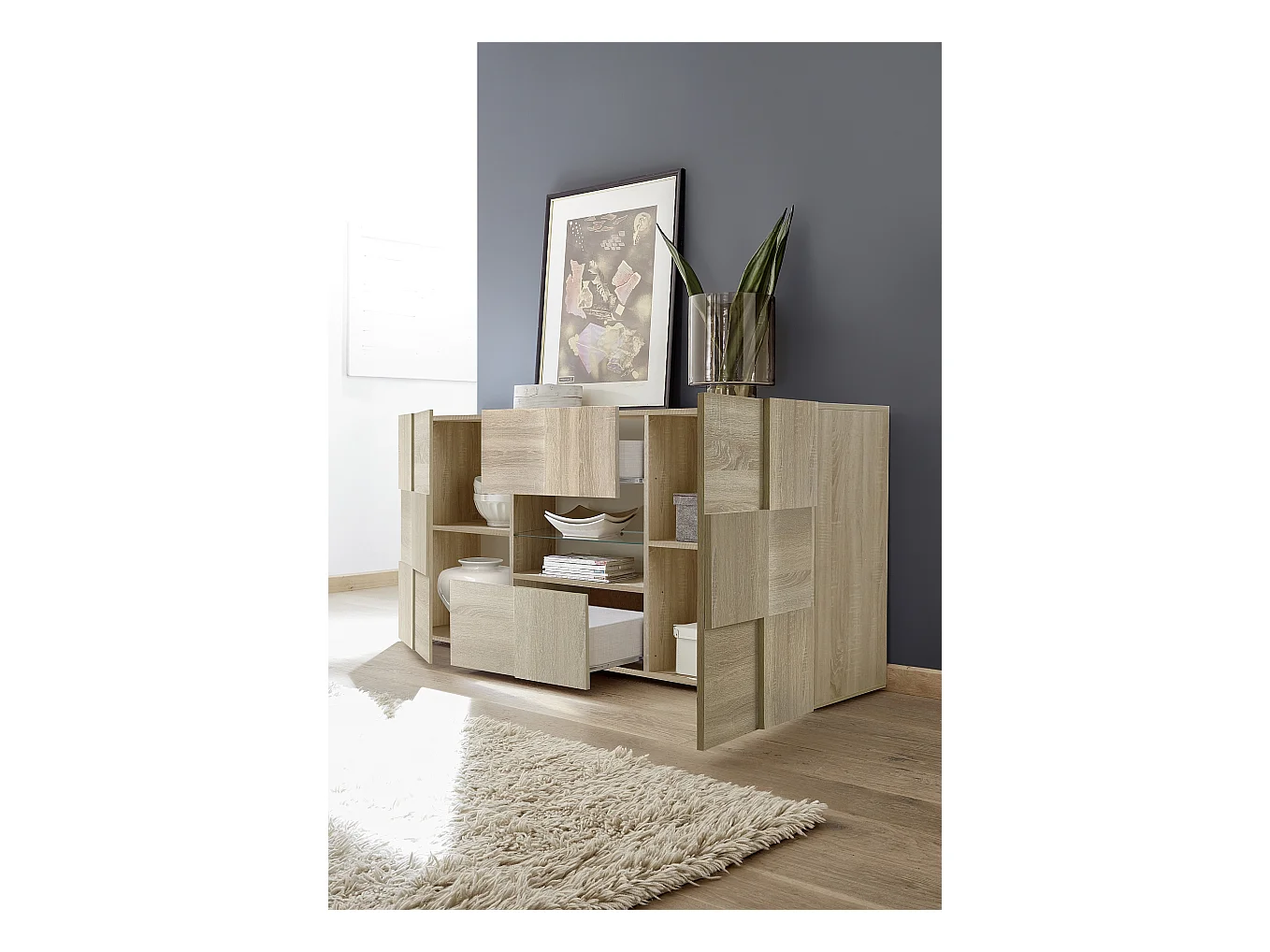 Madia con frontale geometrico due ante e due cassetti per soggiorno 181x84 ML9 rovere sonoma