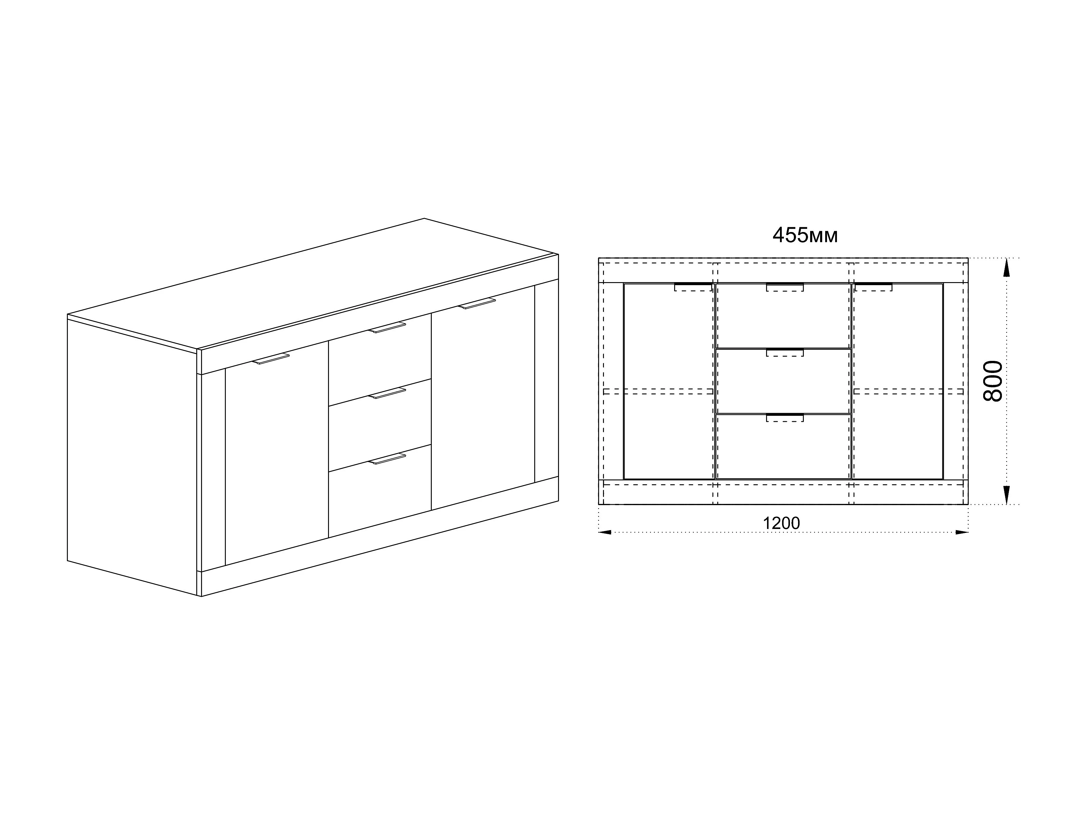 Madia moderna con 3 cassetti 184x80 cm bianco opaco ML55