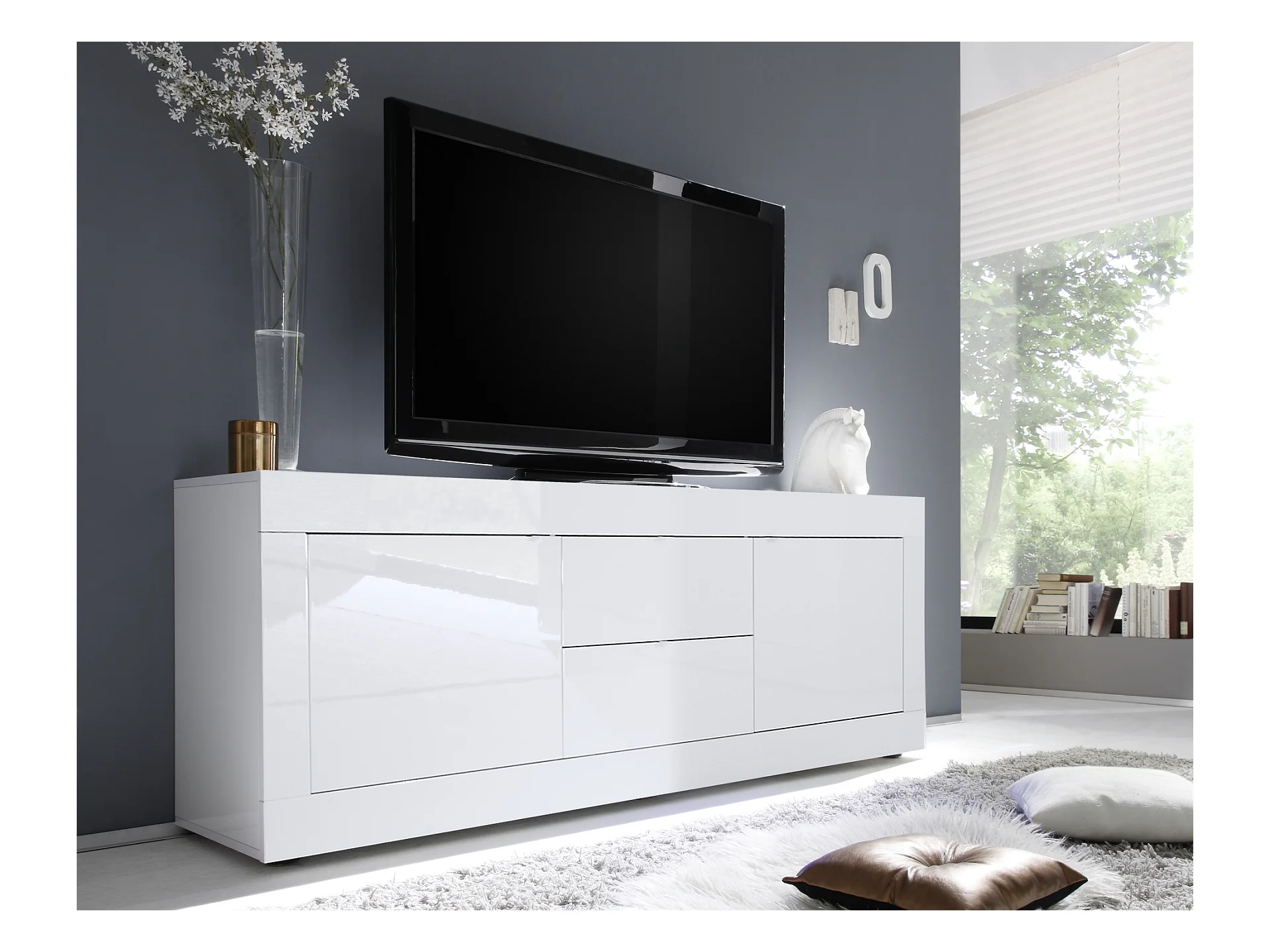 Madia da soggiorno con due ante e due cassetti design moderno 210x66 ML6 bianco lucido