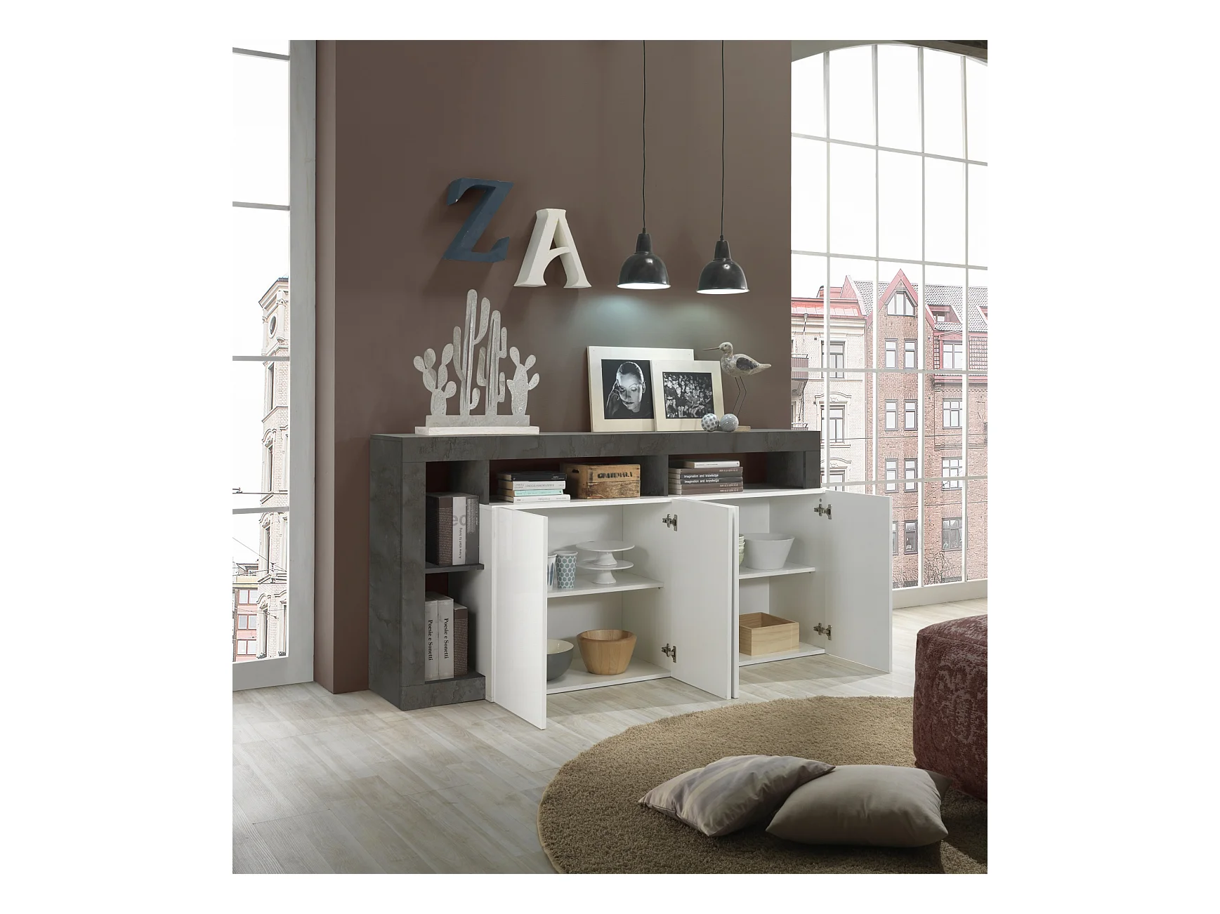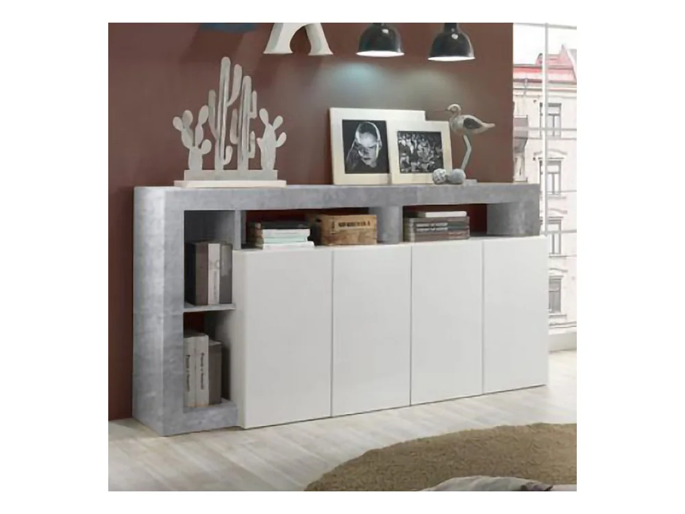 Madia da soggiorno design moderno con quattro ante e ripiano 184x93 ML17 bianco e cemento