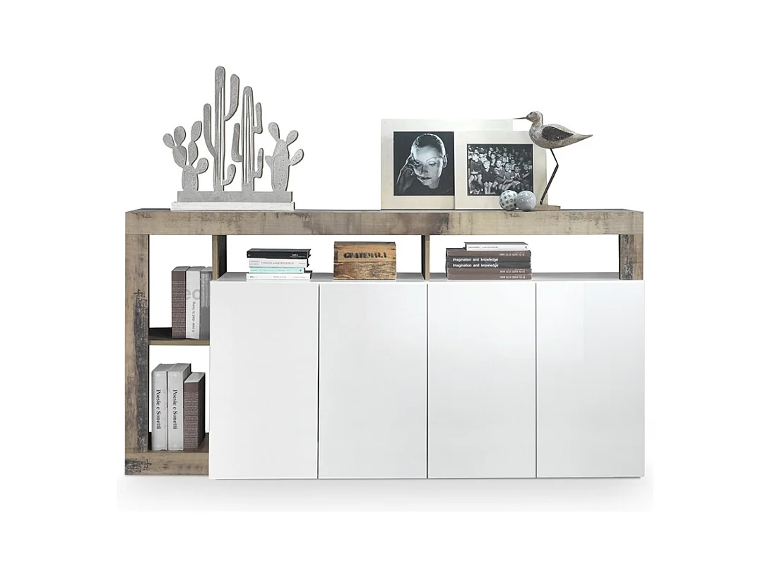 Madia moderna a quattro ante da soggiorno design effetto legno207x86 bianco e pero ML4