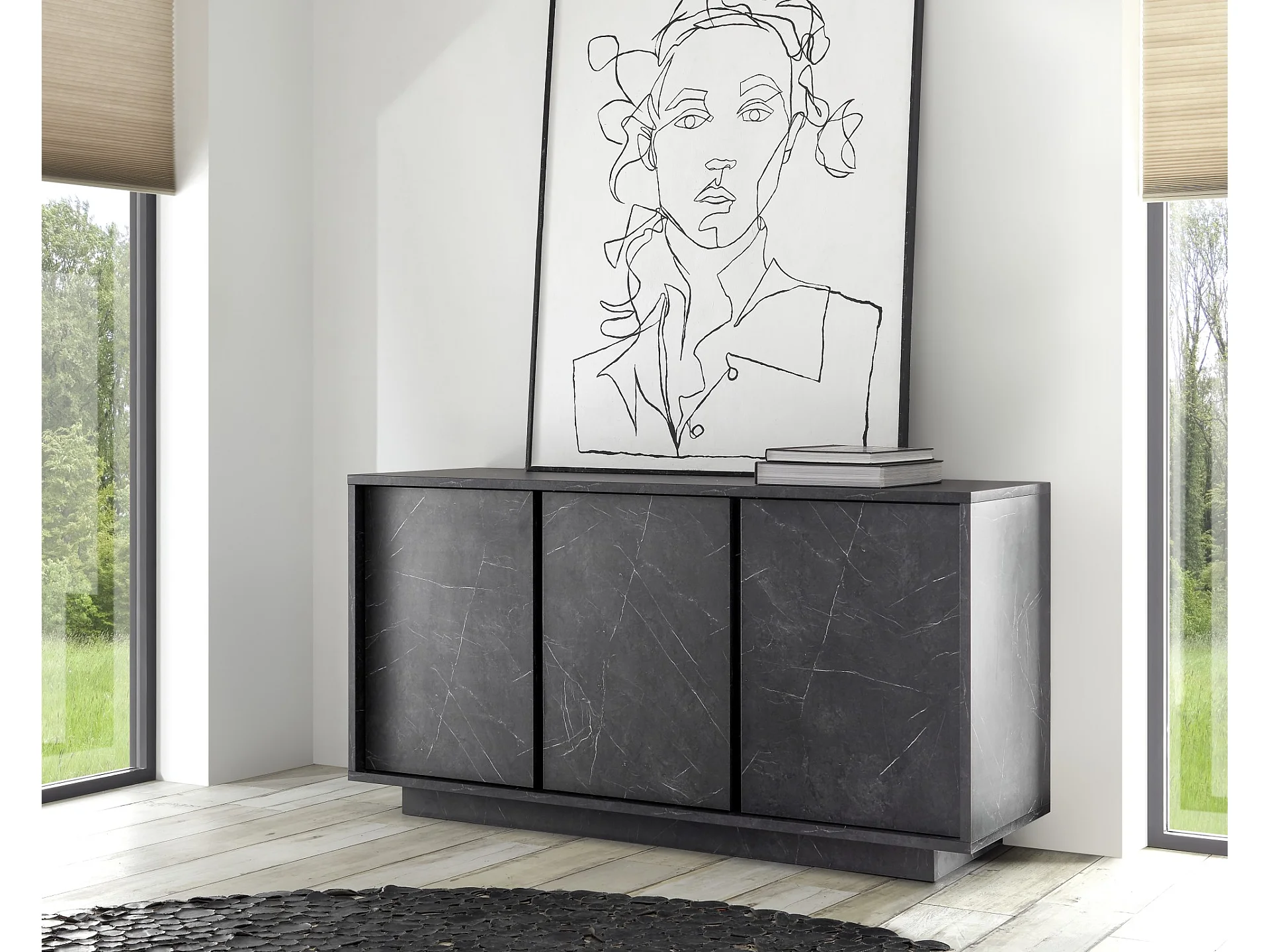 Madia design moderno a tre ante battenti finitura effetto marmo 138x79 ML23 marmo nero