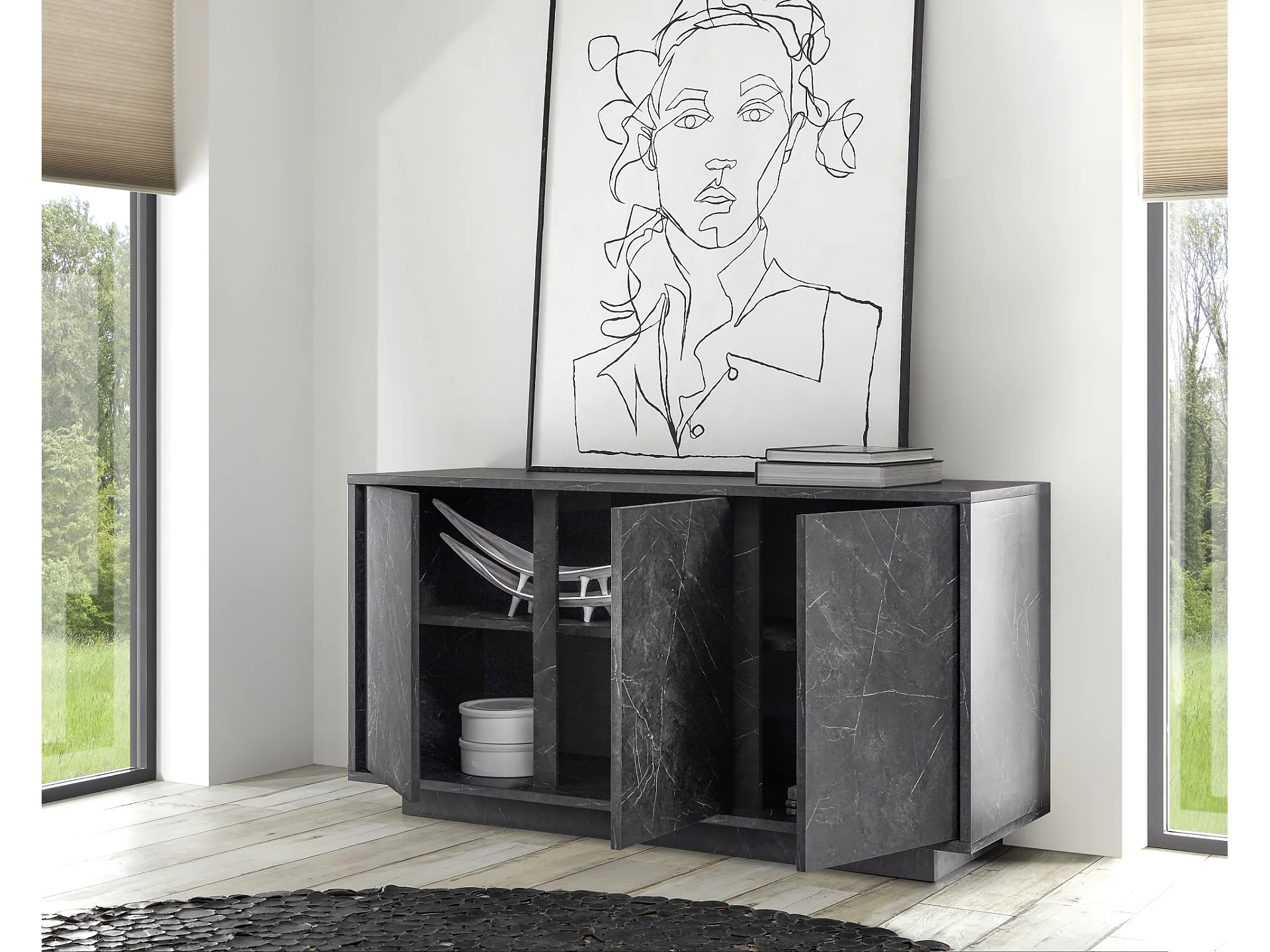 Madia design moderno con quattro ante battenti finitura effetto marmo 180x79 ML22 marmo nero