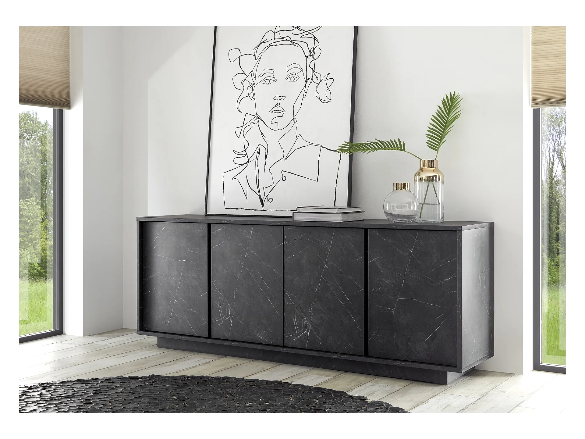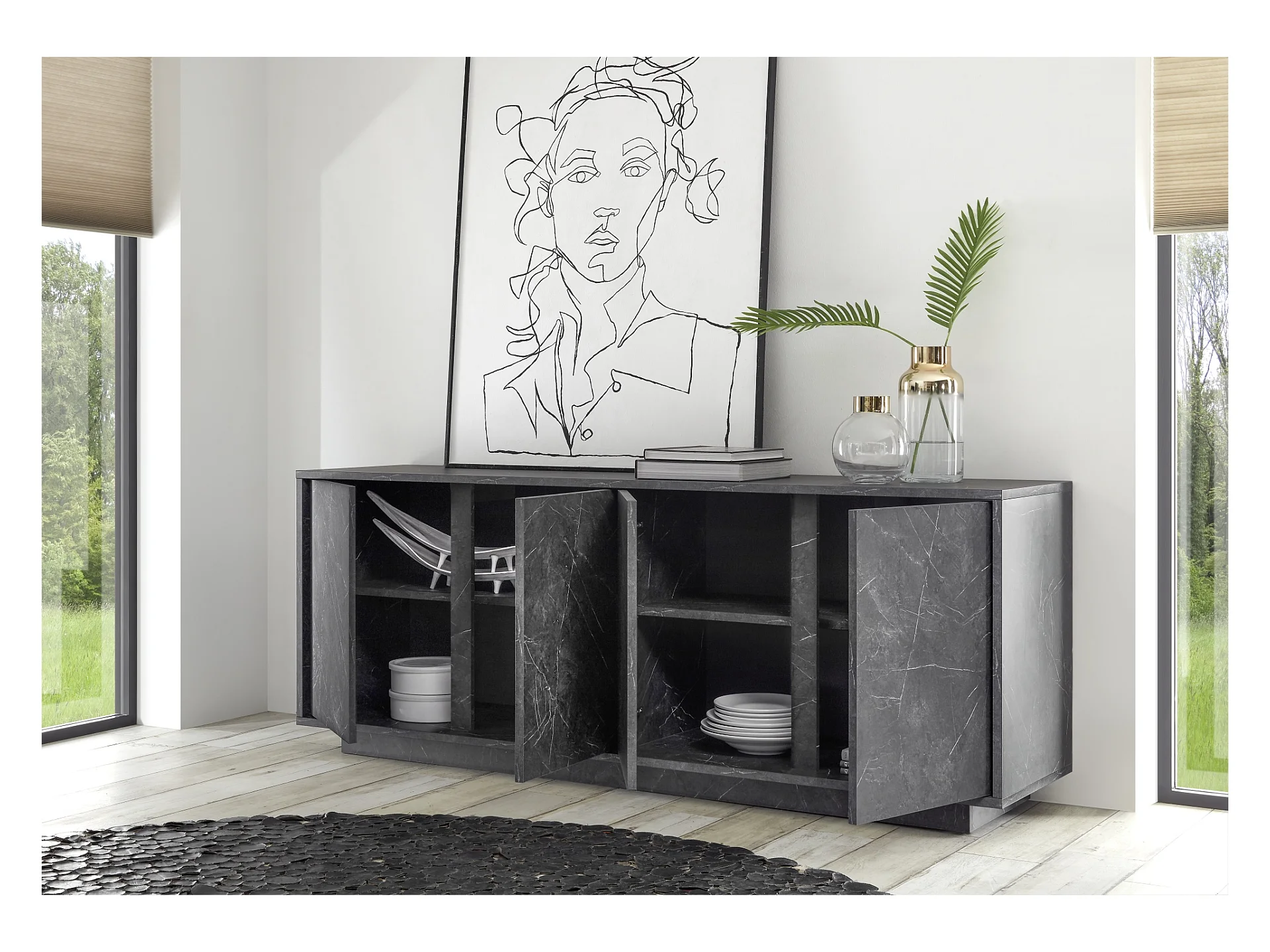 Madia design moderno con quattro ante battenti finitura effetto marmo 180x79 ML22 marmo nero