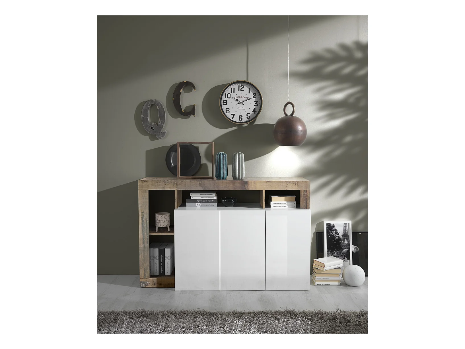 Madia design moderno con tre ante e ripiano da soggiorno 146x93 ML18 bianco e pero