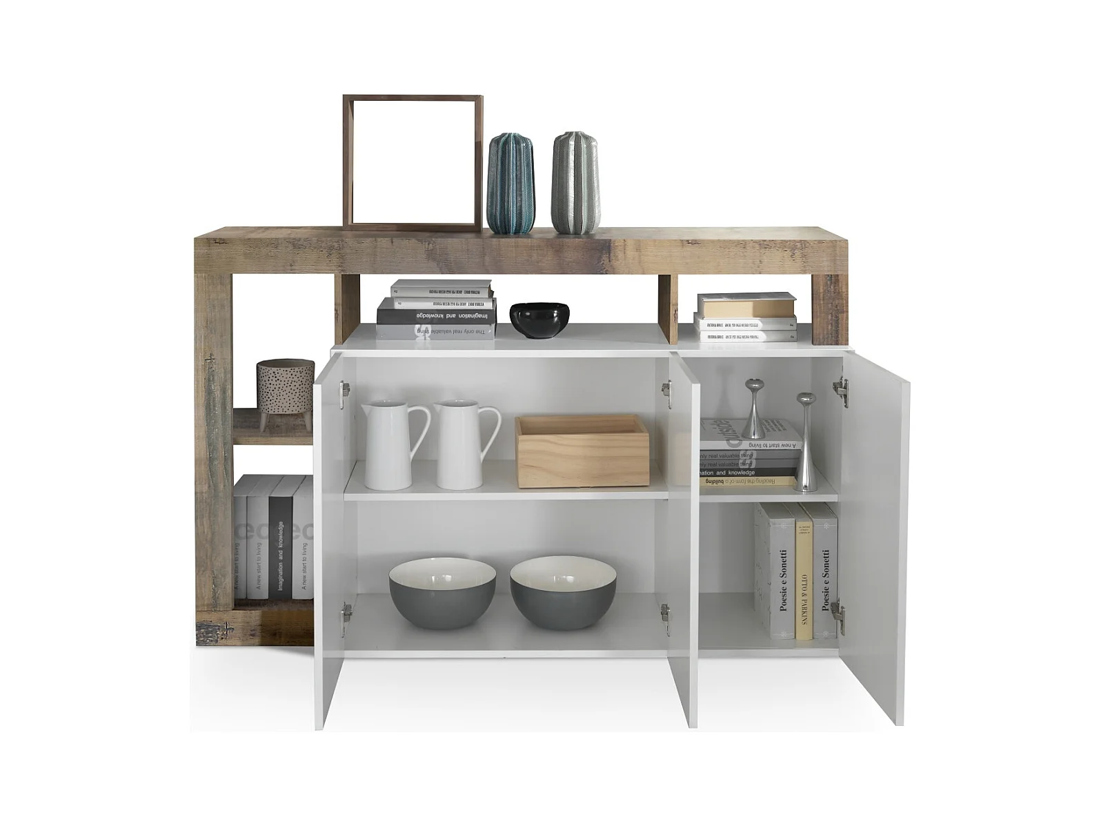 Madia moderna a quattro ante da soggiorno design effetto legno207x86 bianco e pero ML4