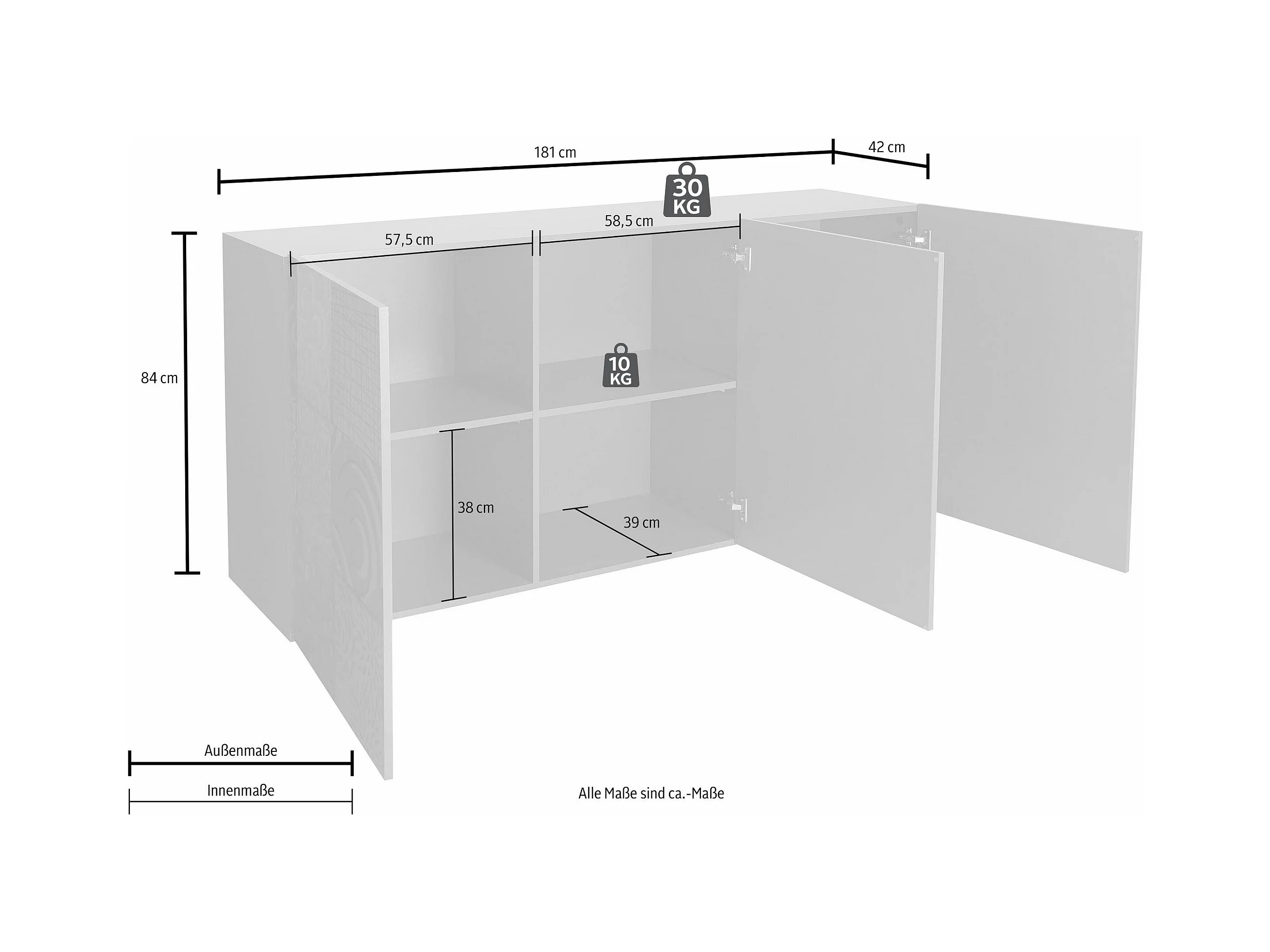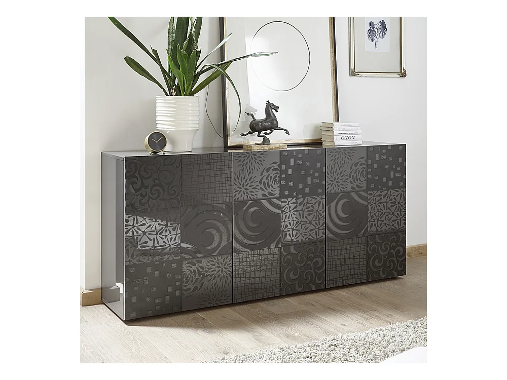 Madia da soggiorno con frontale geometrico a tre ante battenti 181x84 ML10 grigio lucido