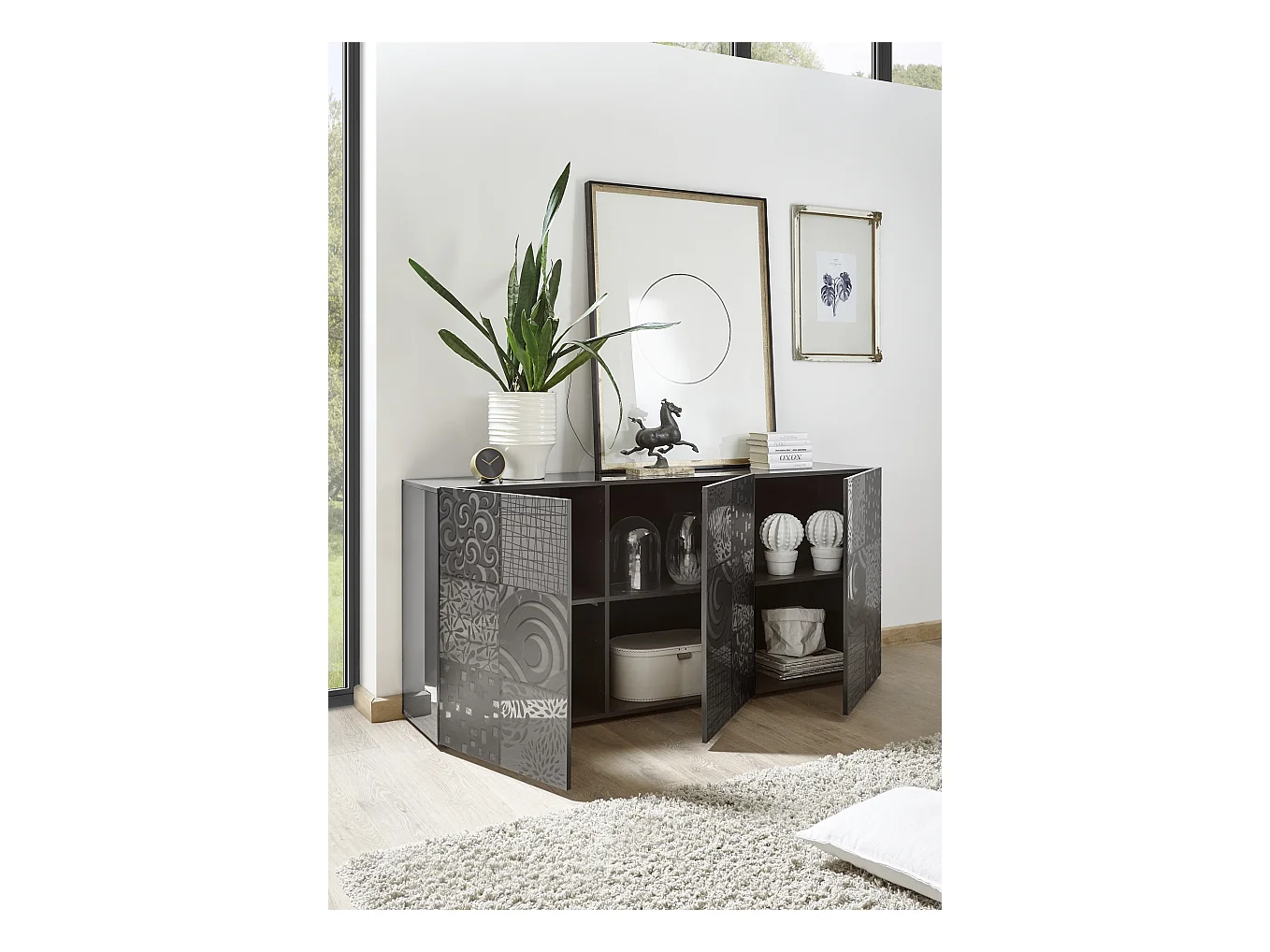 Madia con frontale geometrico due ante e due cassetti per soggiorno 181x84 ML9 grigio lucido
