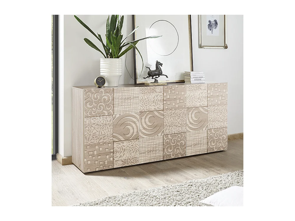 Madia con frontale geometrico due ante e due cassetti per soggiorno 181x84 ML9 rovere sonoma
