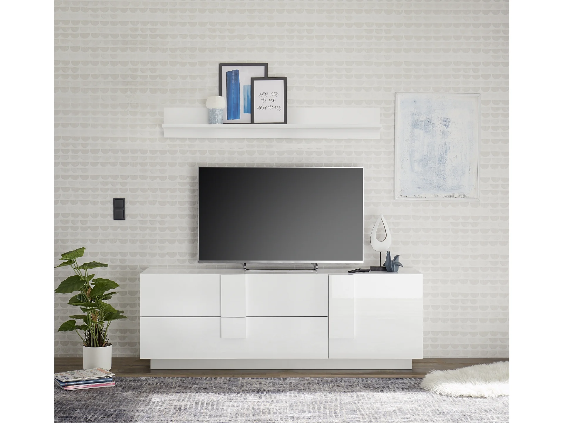 Madia da soggiorno con due ante e due cassetti design moderno 210x66 ML6 bianco lucido