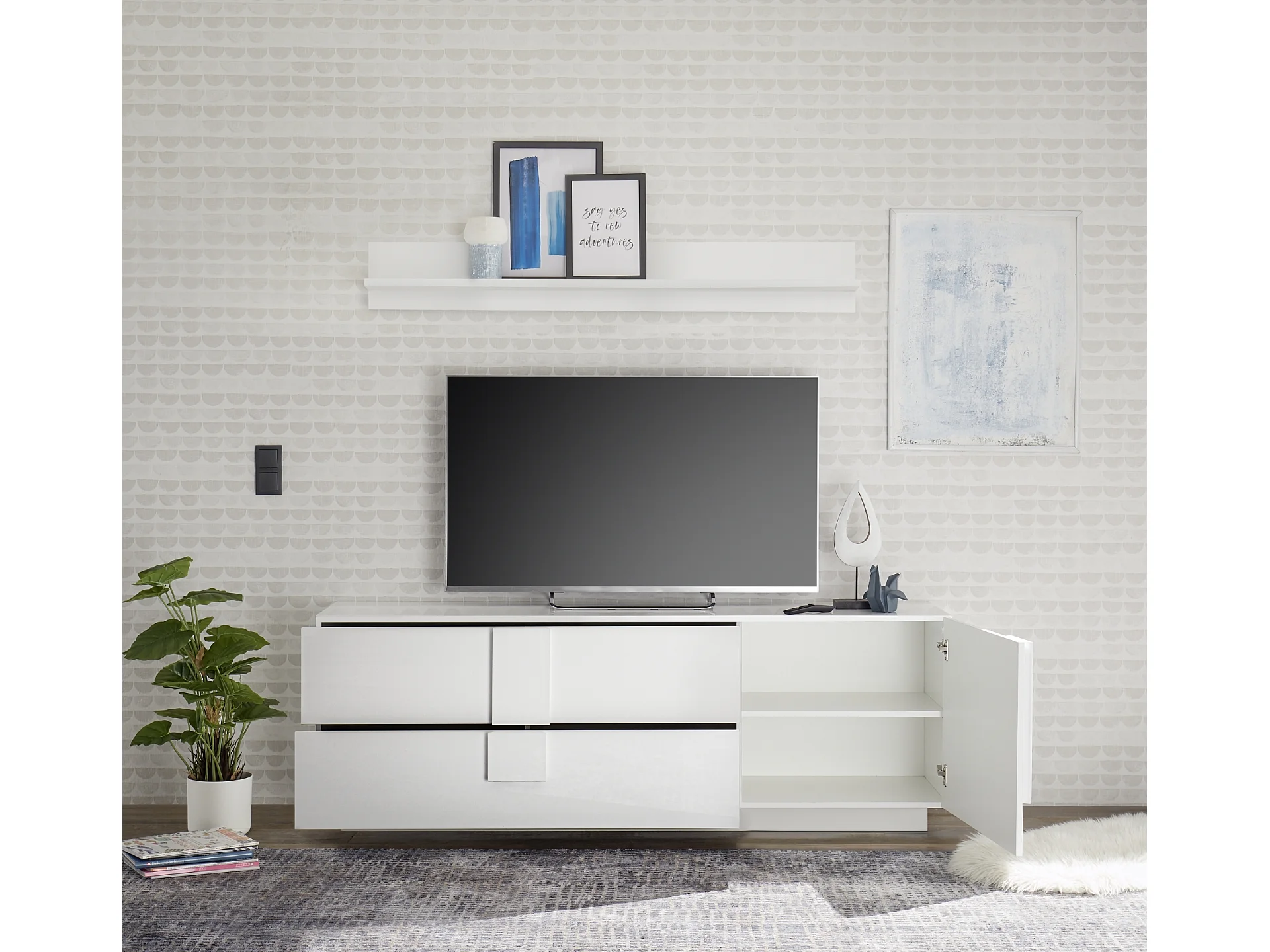 Madia design moderno per soggiorno con ampi cassetti e anta singola 181x63 ML29 bianco lucido