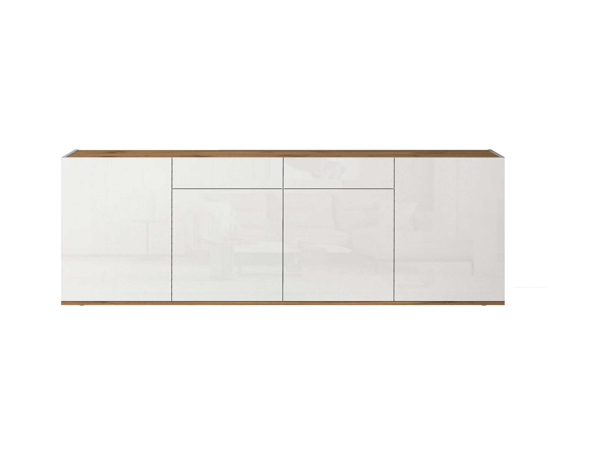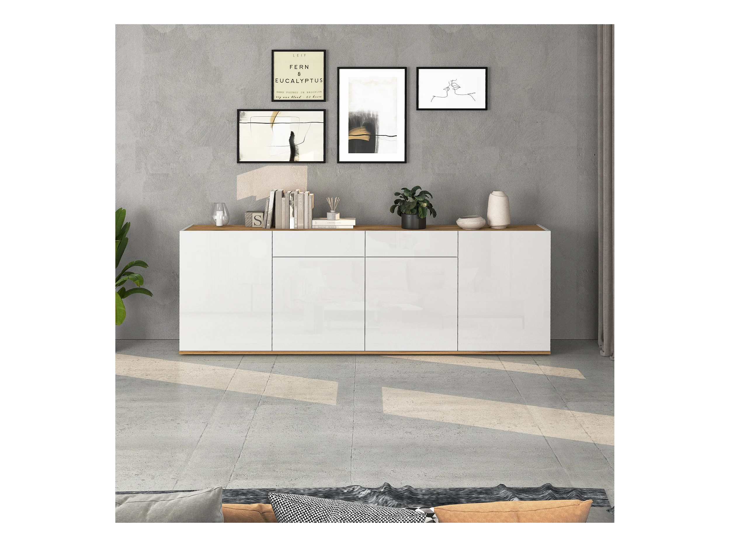 Madia Garda a 4 ante e 2 cassetti bianco lucido e rovere 200x35x71 cm