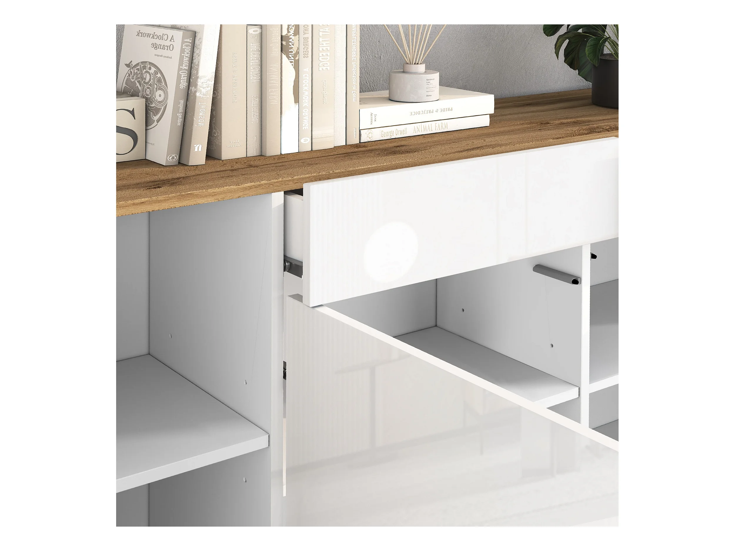 Credenza Garda 4 ante e 2 cassetti bianco lucido e rovere 160,1x35x70 cm