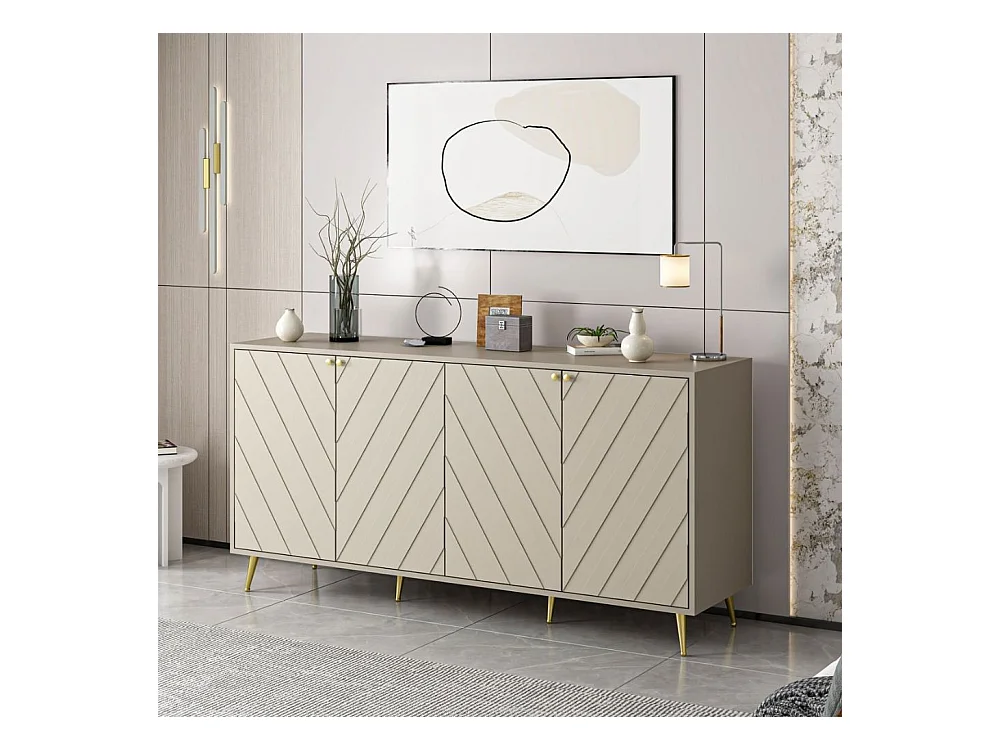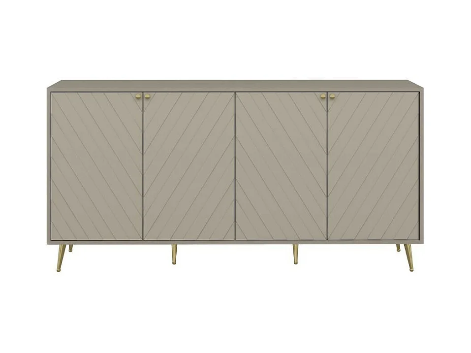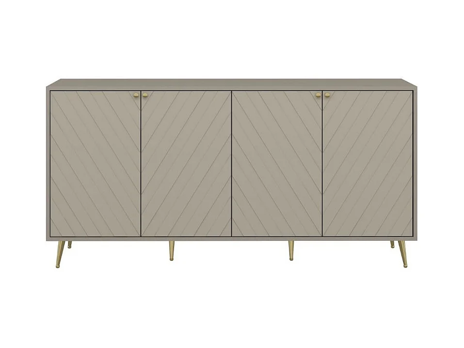 Madia Jana 4 Ante colore cashmere con intagli geometrici maniglie e piedini Oro – Eleganza e Funzionalità per il Tuo Living