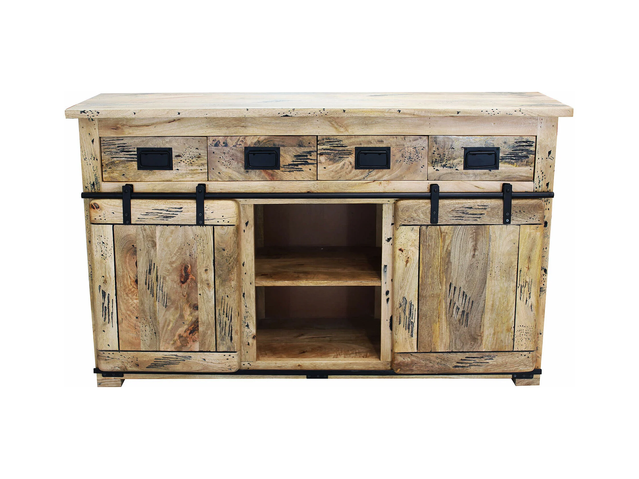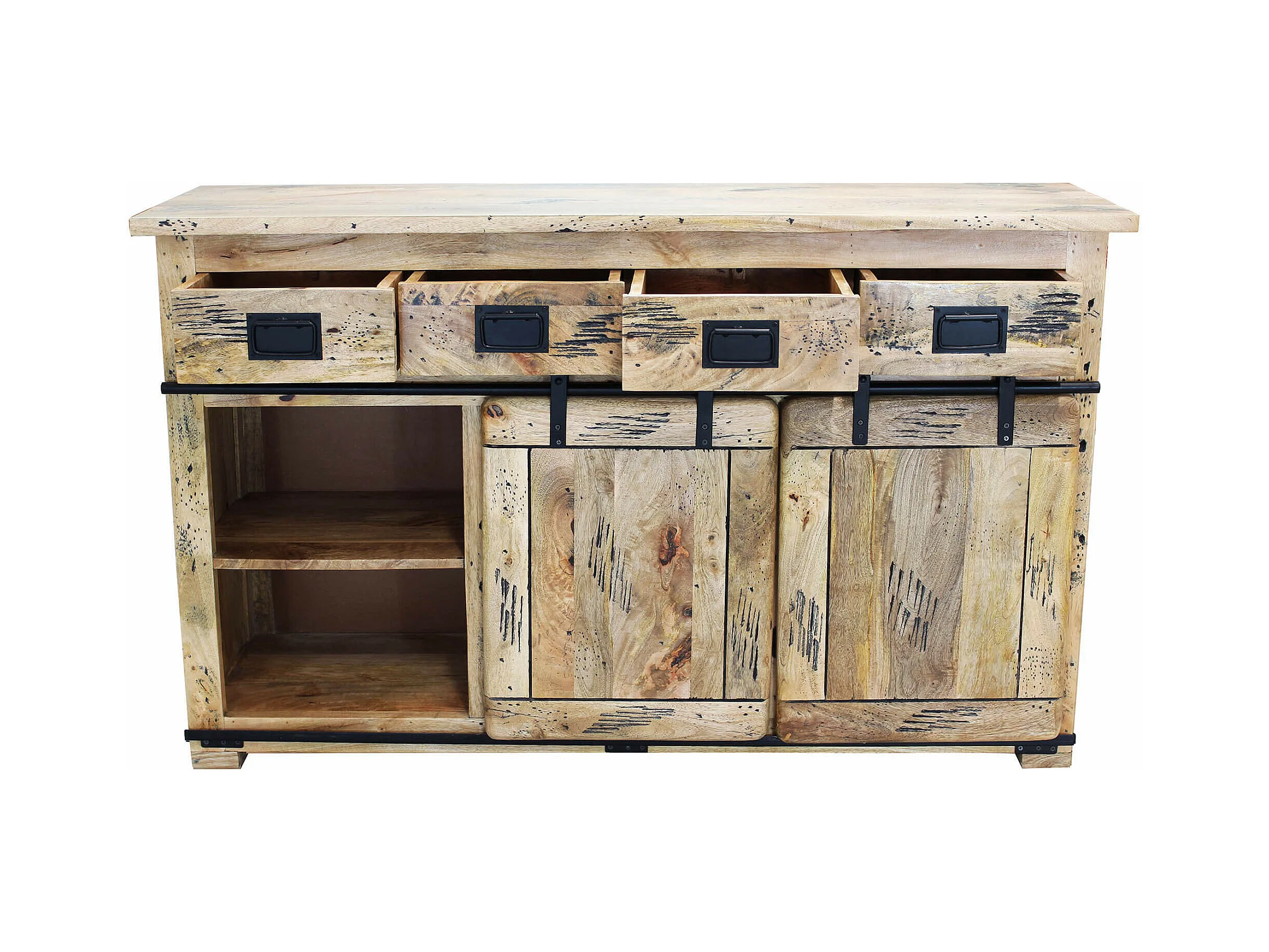 MilaniHome.it - Mobile con decoro naturale con 3 ante in legno di mango con struttura in ferro cm 150x40x85 hdi coloreMarrone