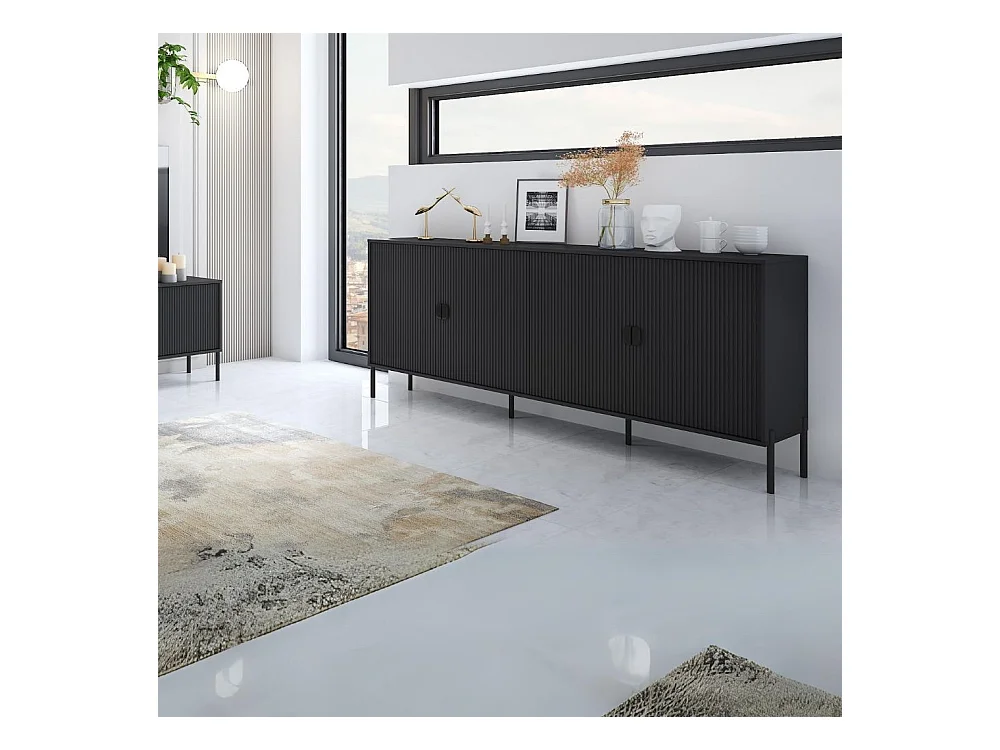 Madia Lotus 4 ante con frontali cannettati colore nero opaco 203.4x49x87.4H