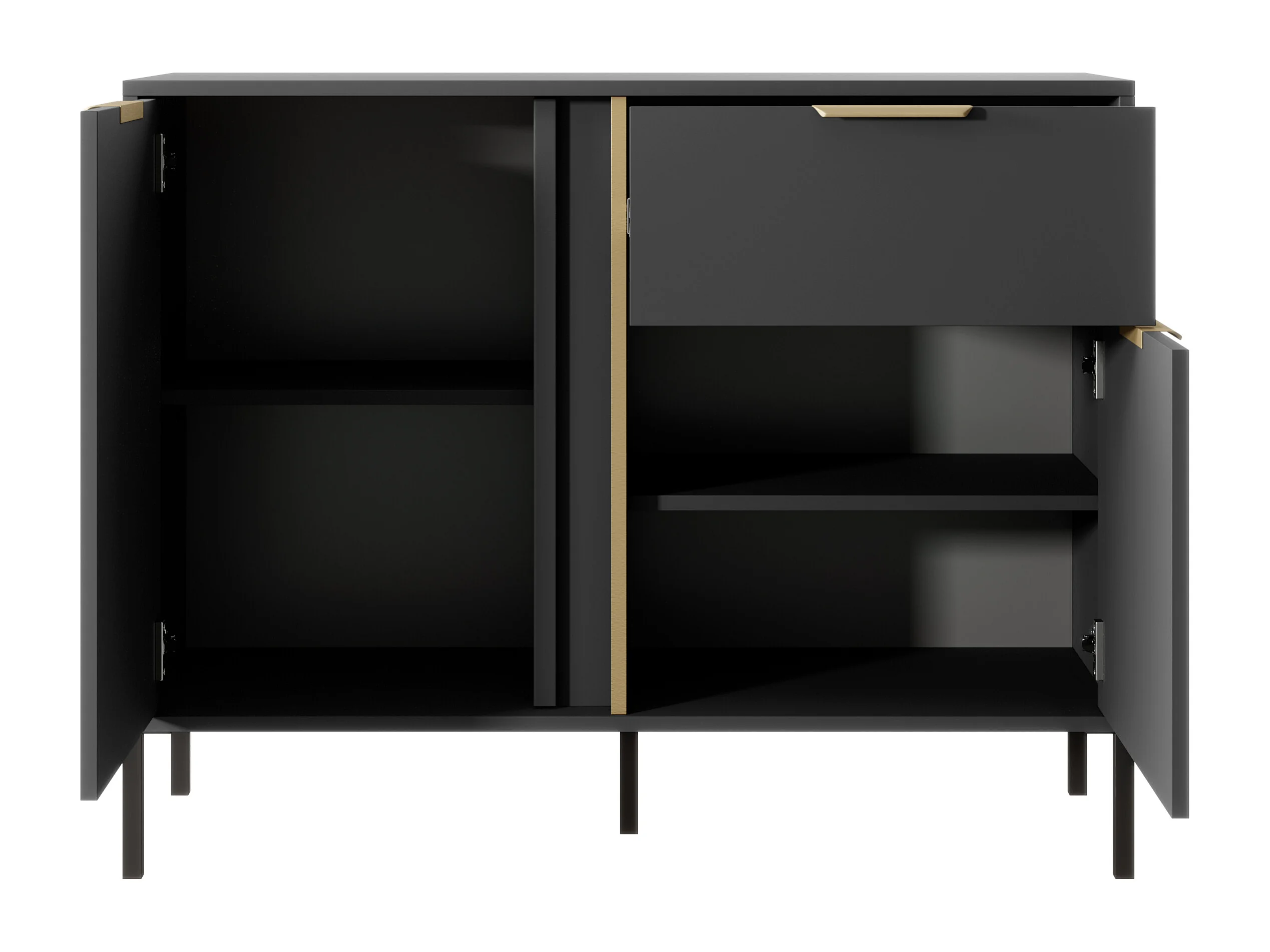 Madia moderna 153x81cm con 3 ante antracite con dettagli oro MALK12