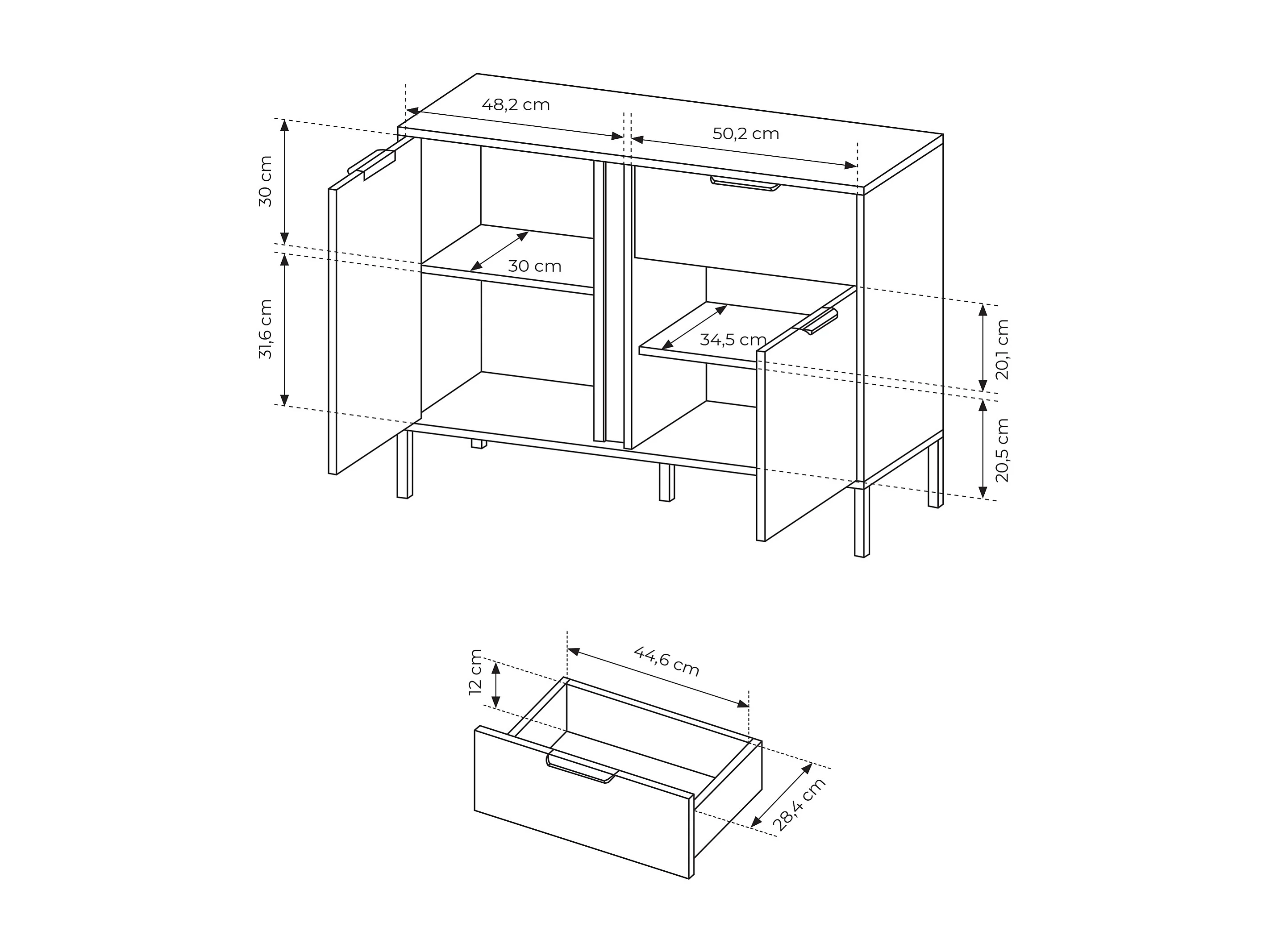 Madia moderna 103x81cm con 2 ante e 1 cassetto antracite con dettagli oro MALK14