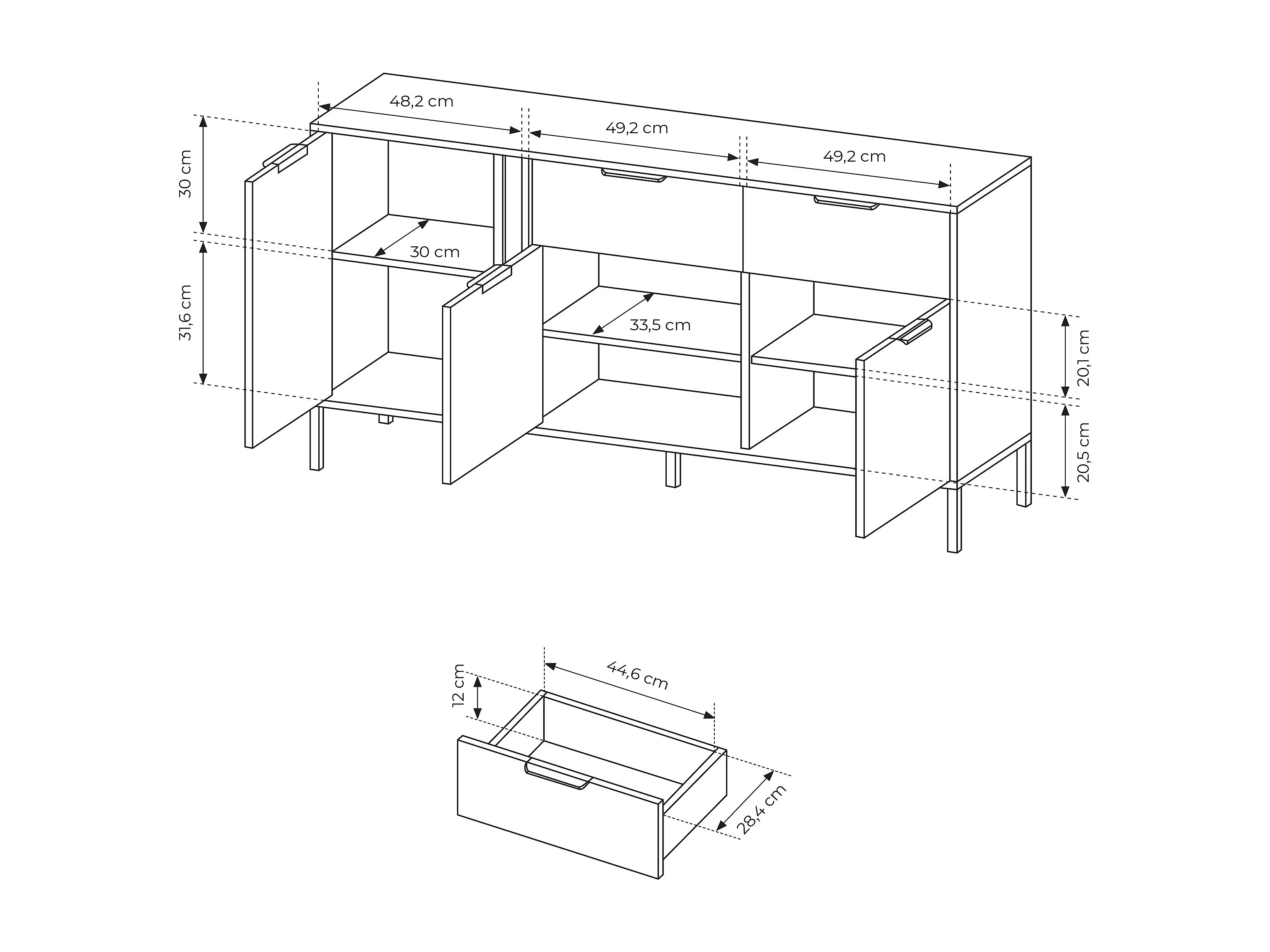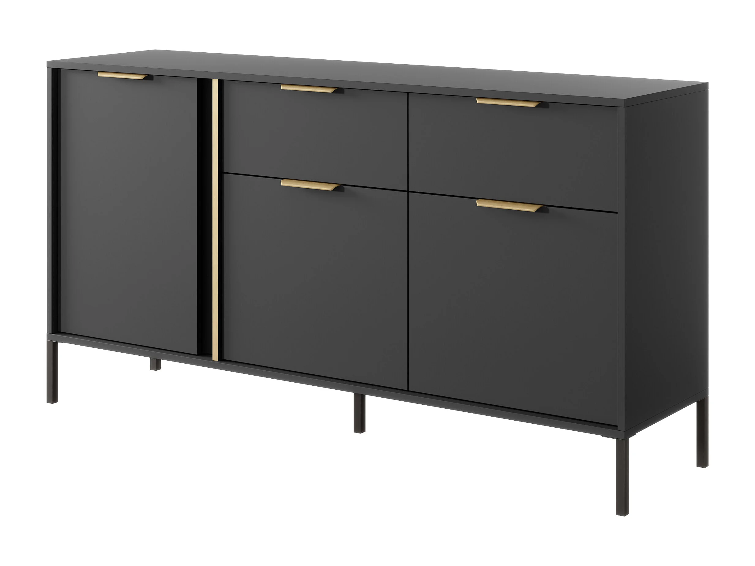 Madia moderna 153x81cm con 3 ante e 2 cassetti antracite con dettagli oro MALK11