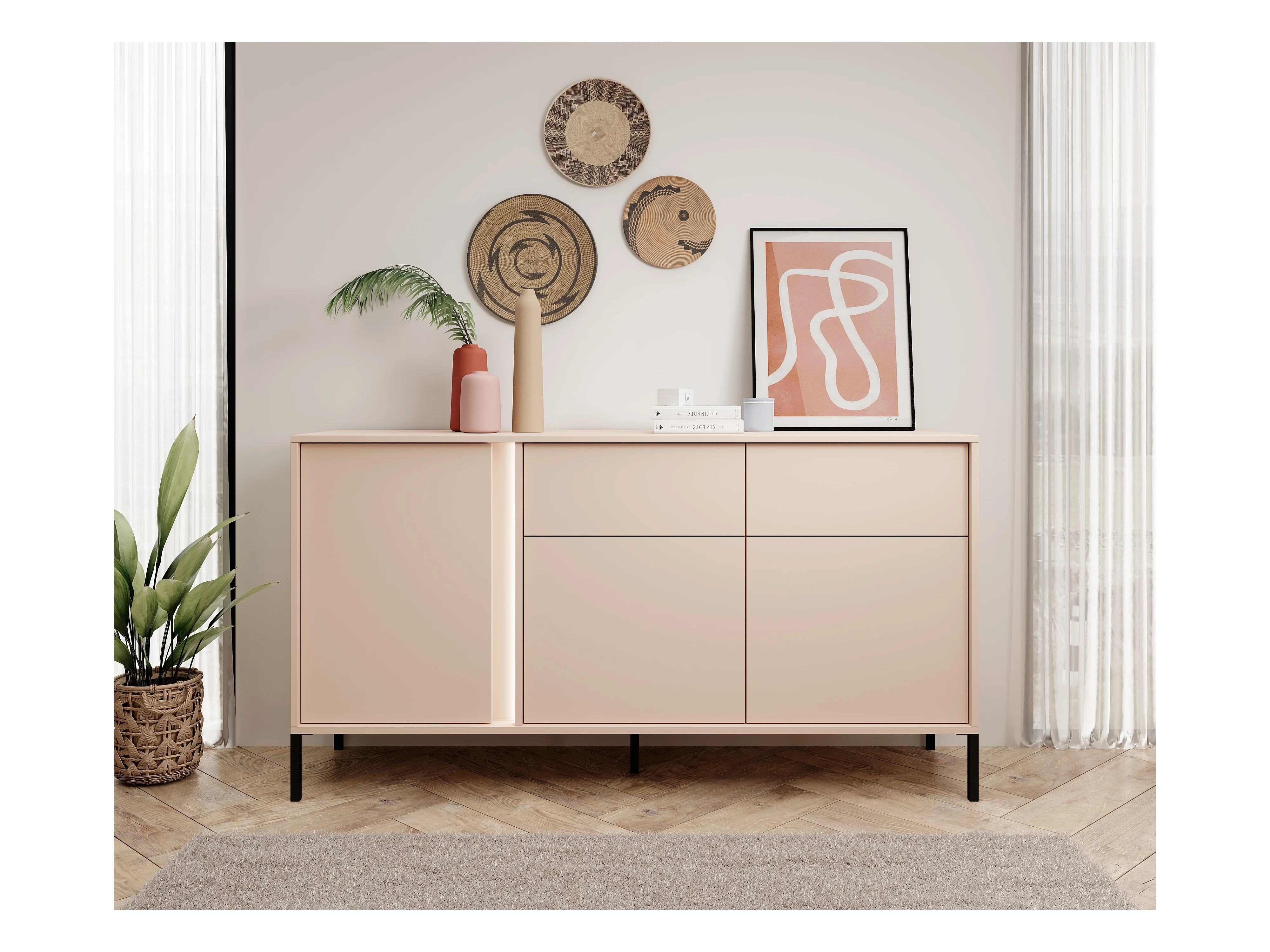 Madia moderna 203x81cm con luce LED 4 ante beige MALK9