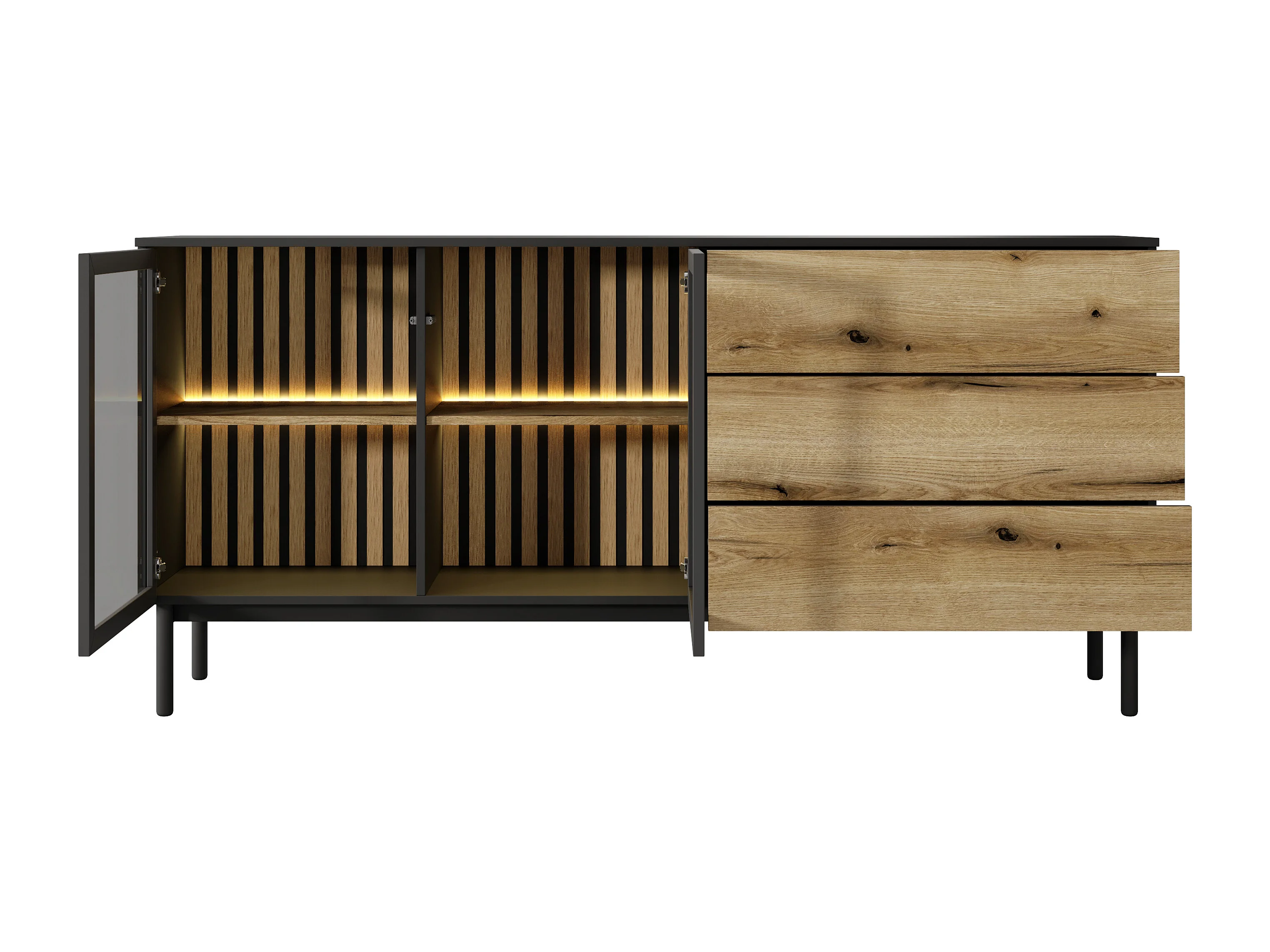 Madia moderna 150x85cm con luci LED 2 ante e 3 cassetti marrone e nero MALK15