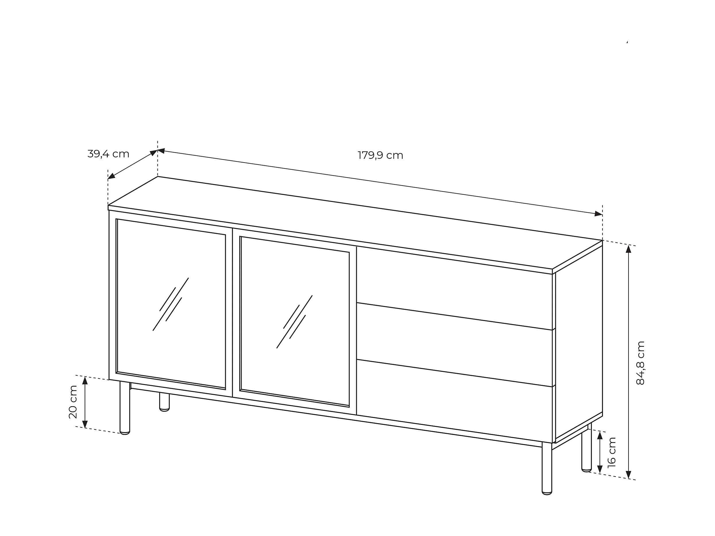 Madia moderna 153x81cm con 3 ante e 2 cassetti antracite con dettagli oro MALK11