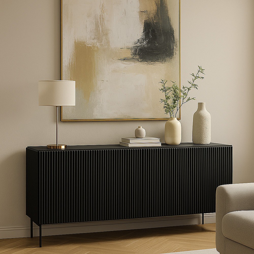 Madia moderna 195 cm con 4 ante push to open nera MALK42