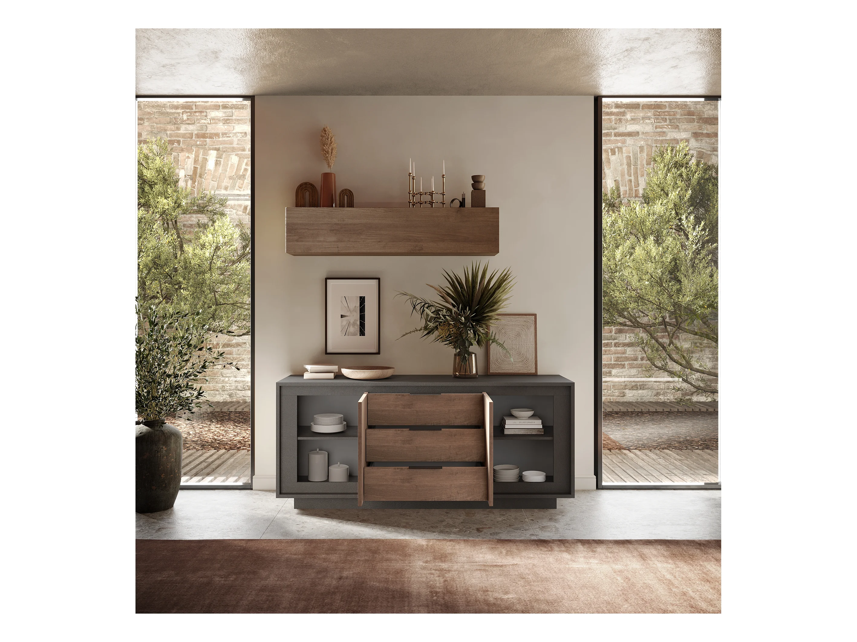 Madia moderna 2 ante 184x80 cm grafite e rovere scuro ML55