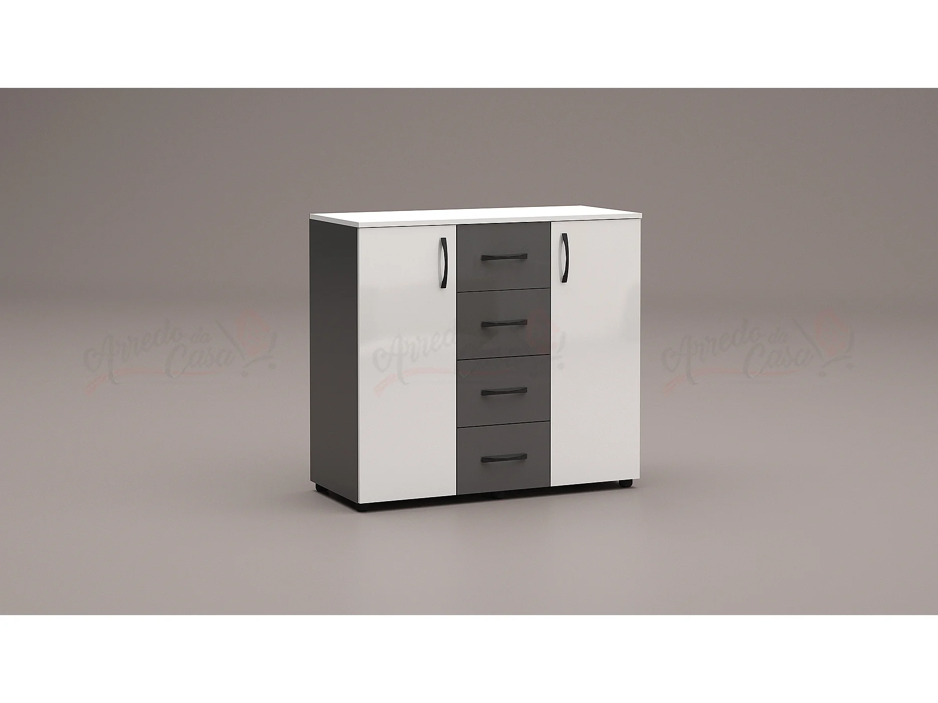 Madia moderna 2 ante e 4 cassetti bianco lucido e antracite MG1