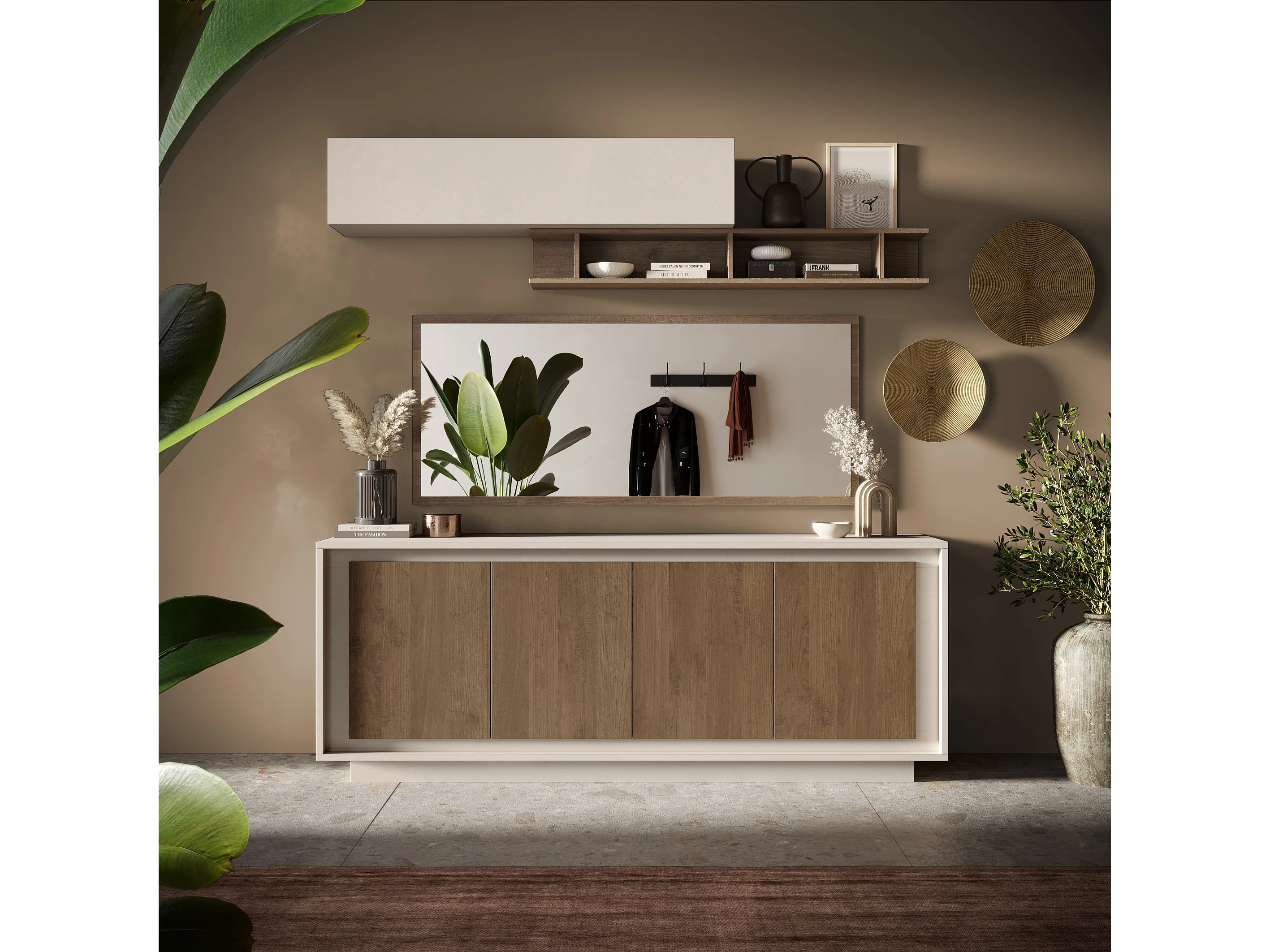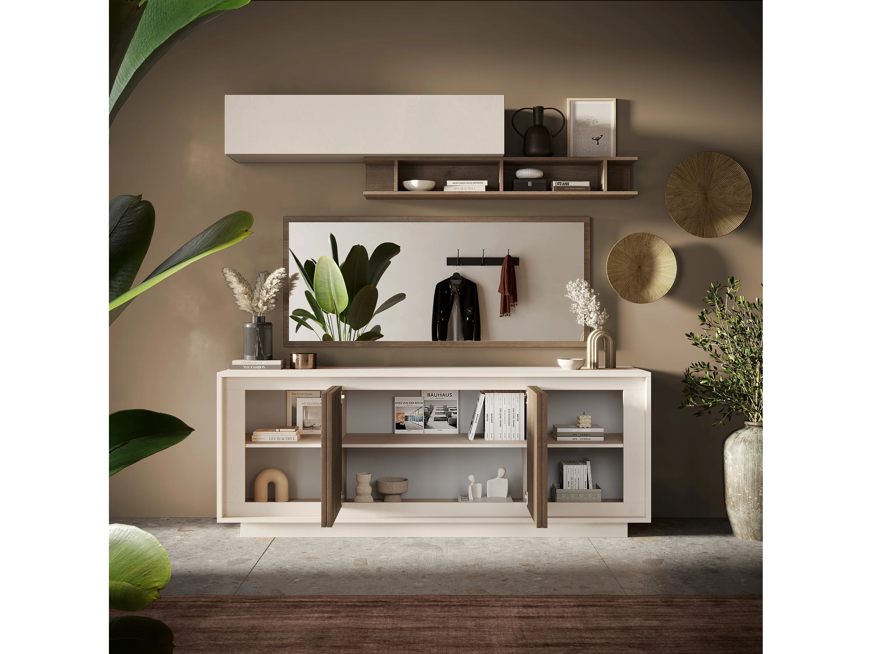 Madia moderna a quattro ante da soggiorno design effetto legno207x86 bianco e pero ML4