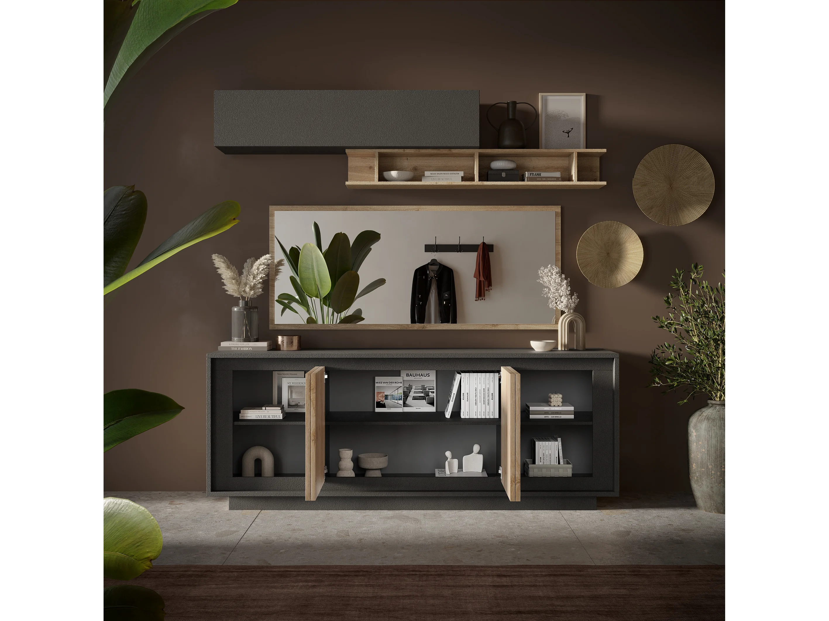 Madia moderna a 4 ante 207x80 cm grafite e rovere chiaro ML56