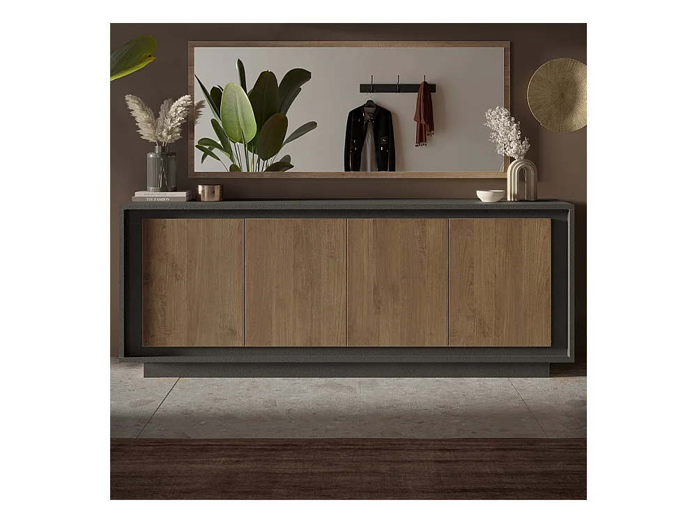 Madia moderna a 4 ante 207x80 cm grafite e rovere scuro ML56