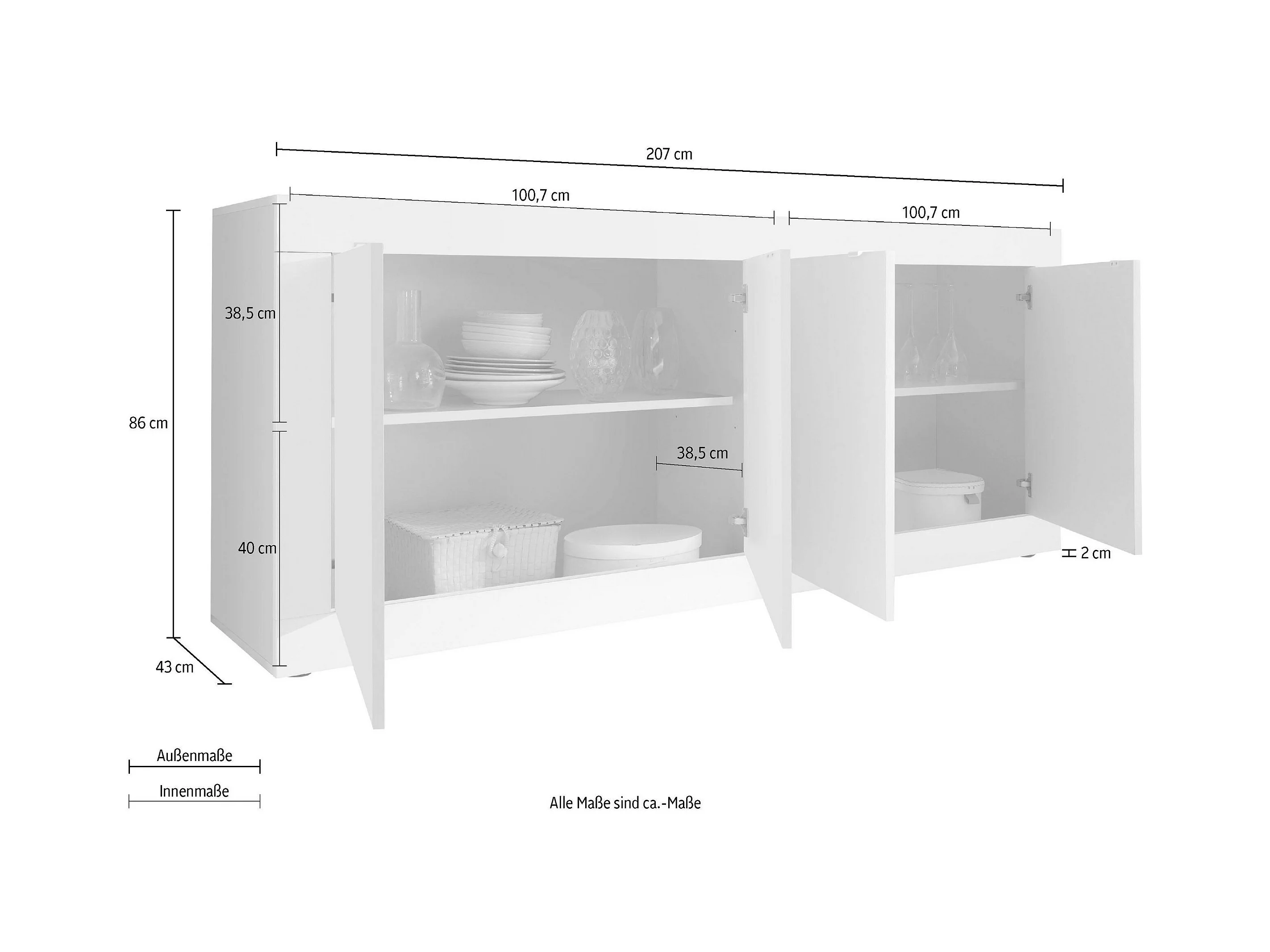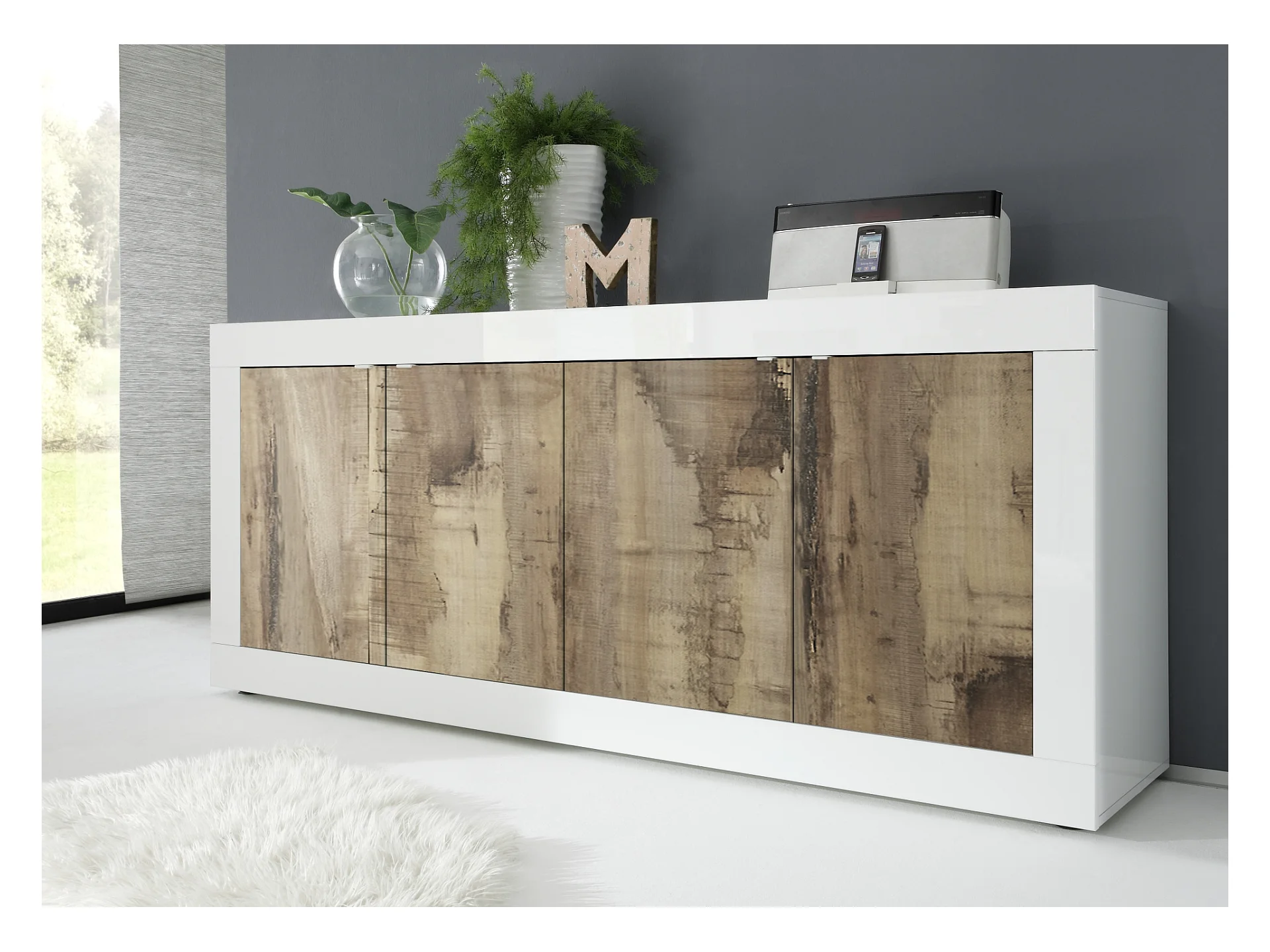 Madia moderna a quattro ante da soggiorno design effetto legno207x86 bianco e pero ML4