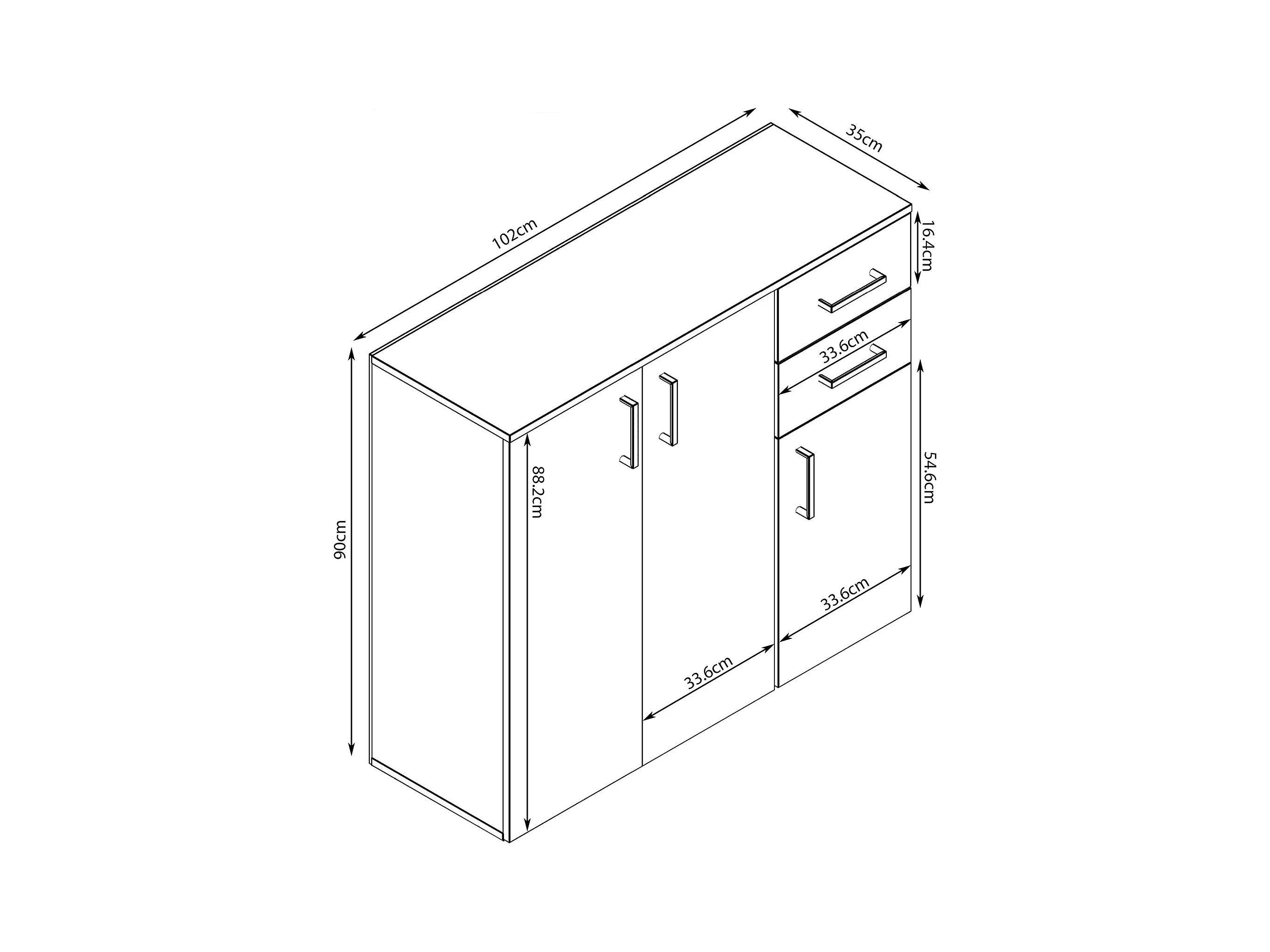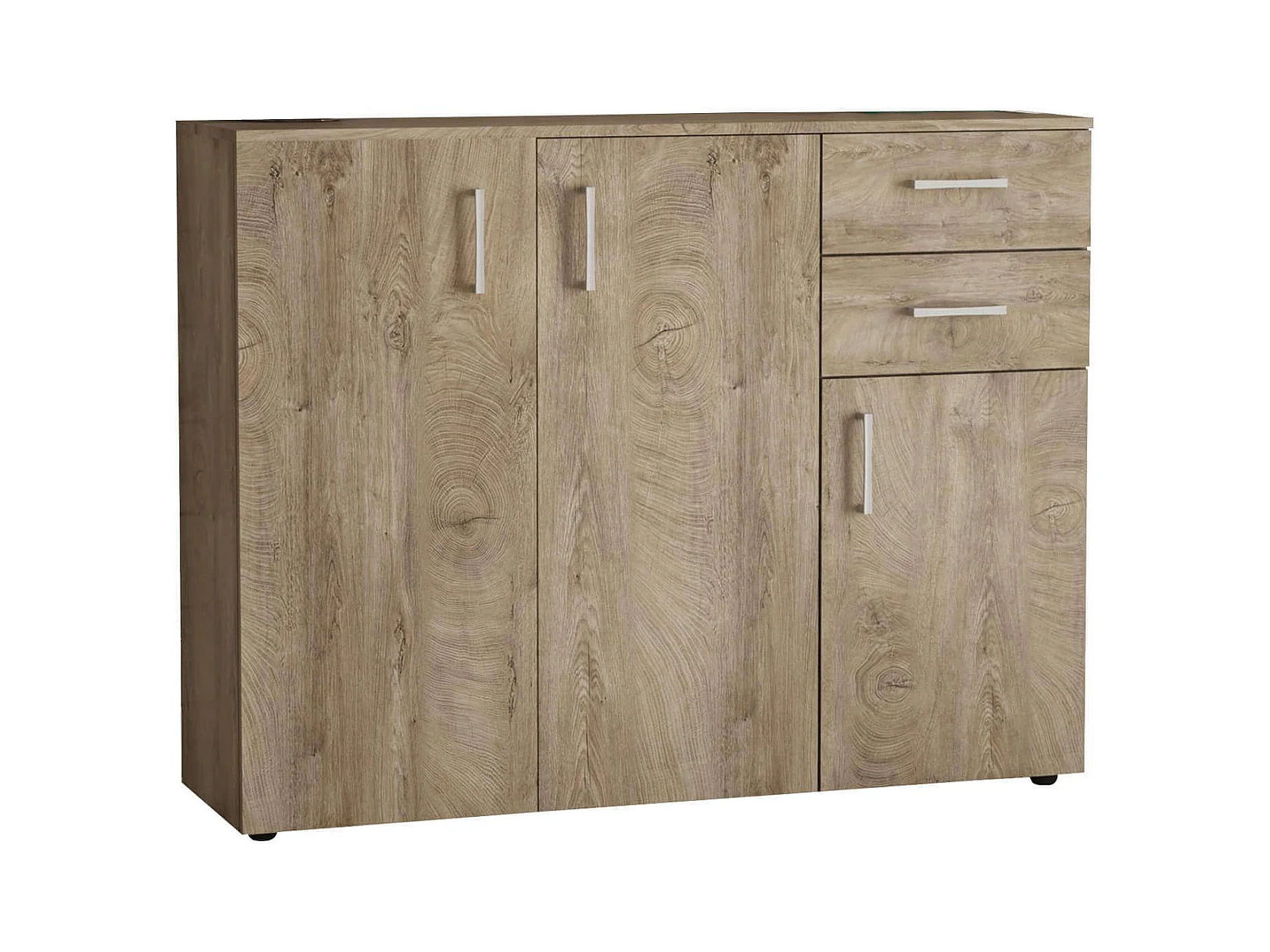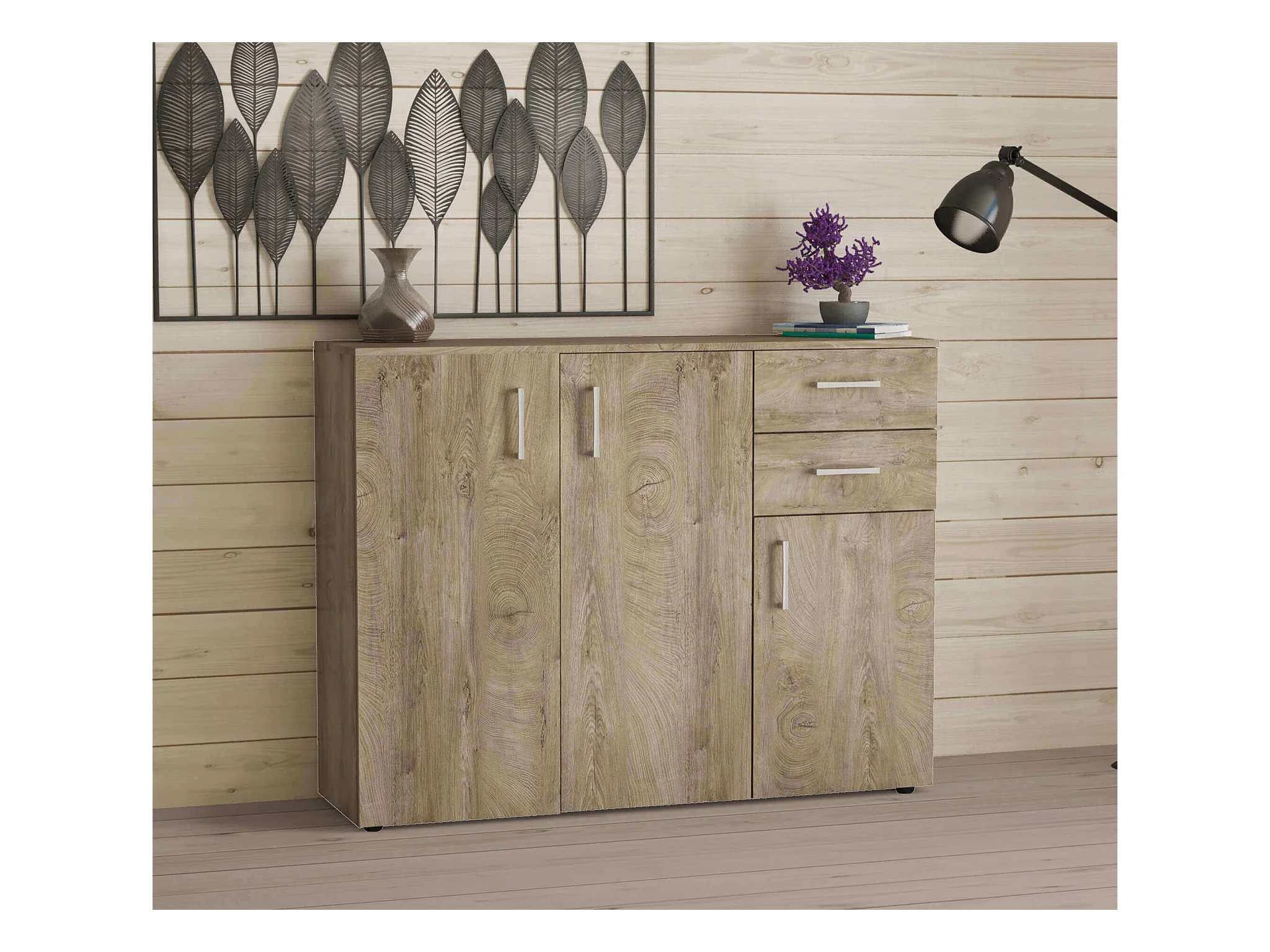 MilaniHome.it - madia moderna con 2 cassetti e tre ante di design moderno contemporaneo cm 106 x 36 x 83 hdi coloreQuercia Chiaro