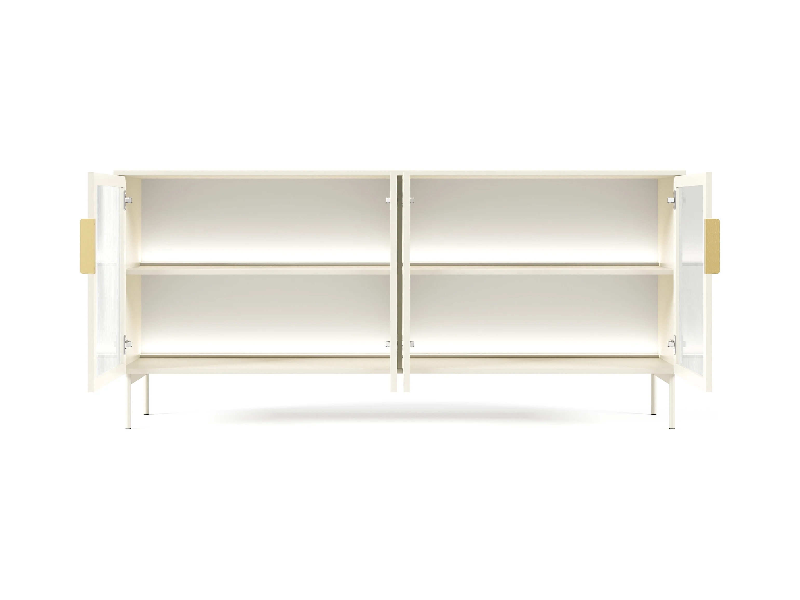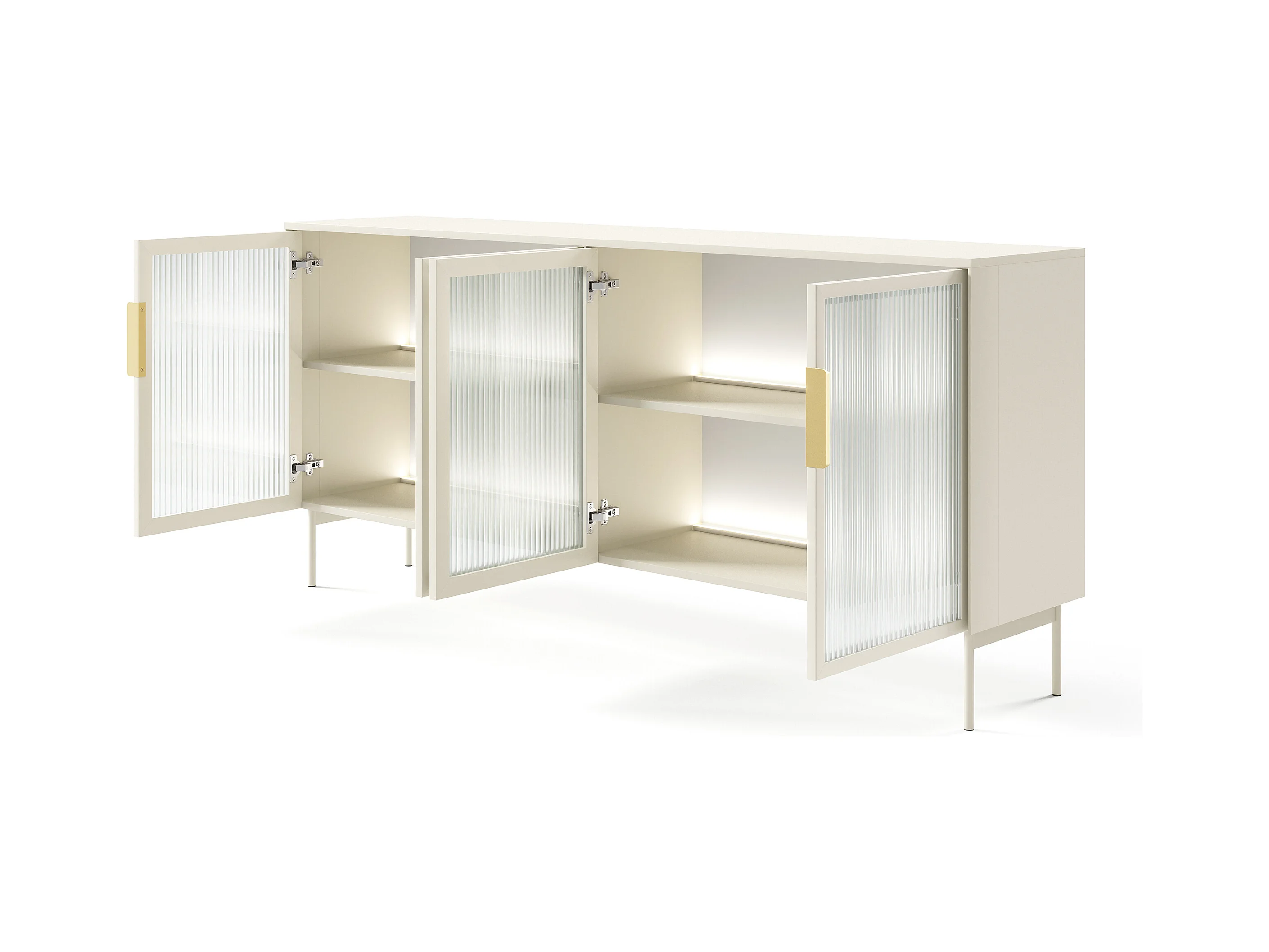 Madia da soggiorno moderna con ante in vetro temperato e luce LED cashmere MALK41
