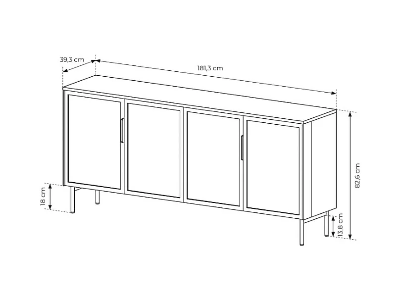 Credenza con 4 ante e 2 cassetti Naturale - MEROLIA
