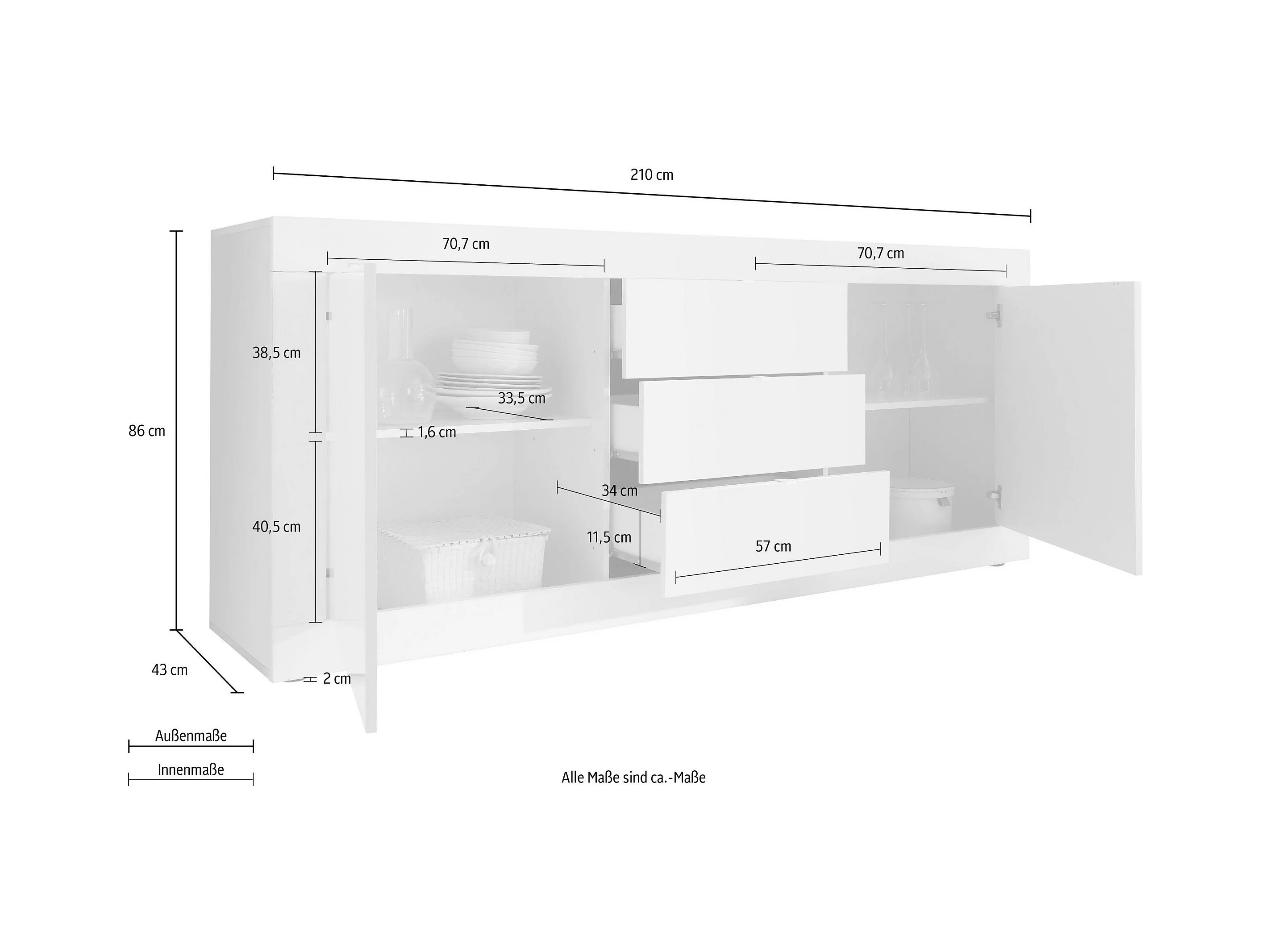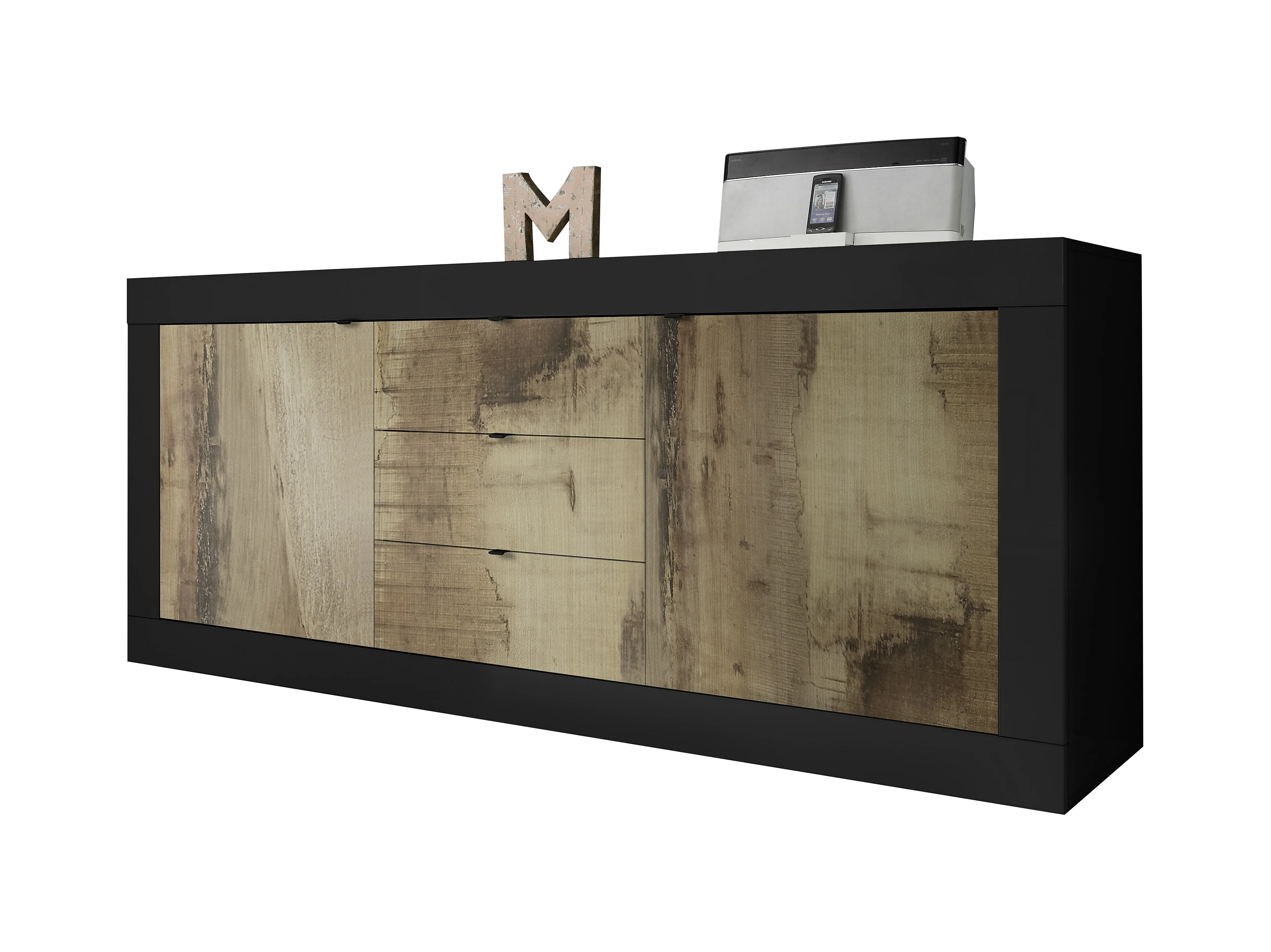 Madia moderna con tre cassetti e due ante per soggiorno design effetto legno 210x86 ML5 nero e pero