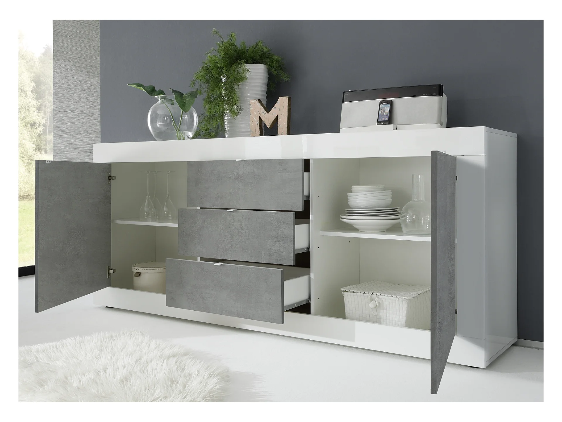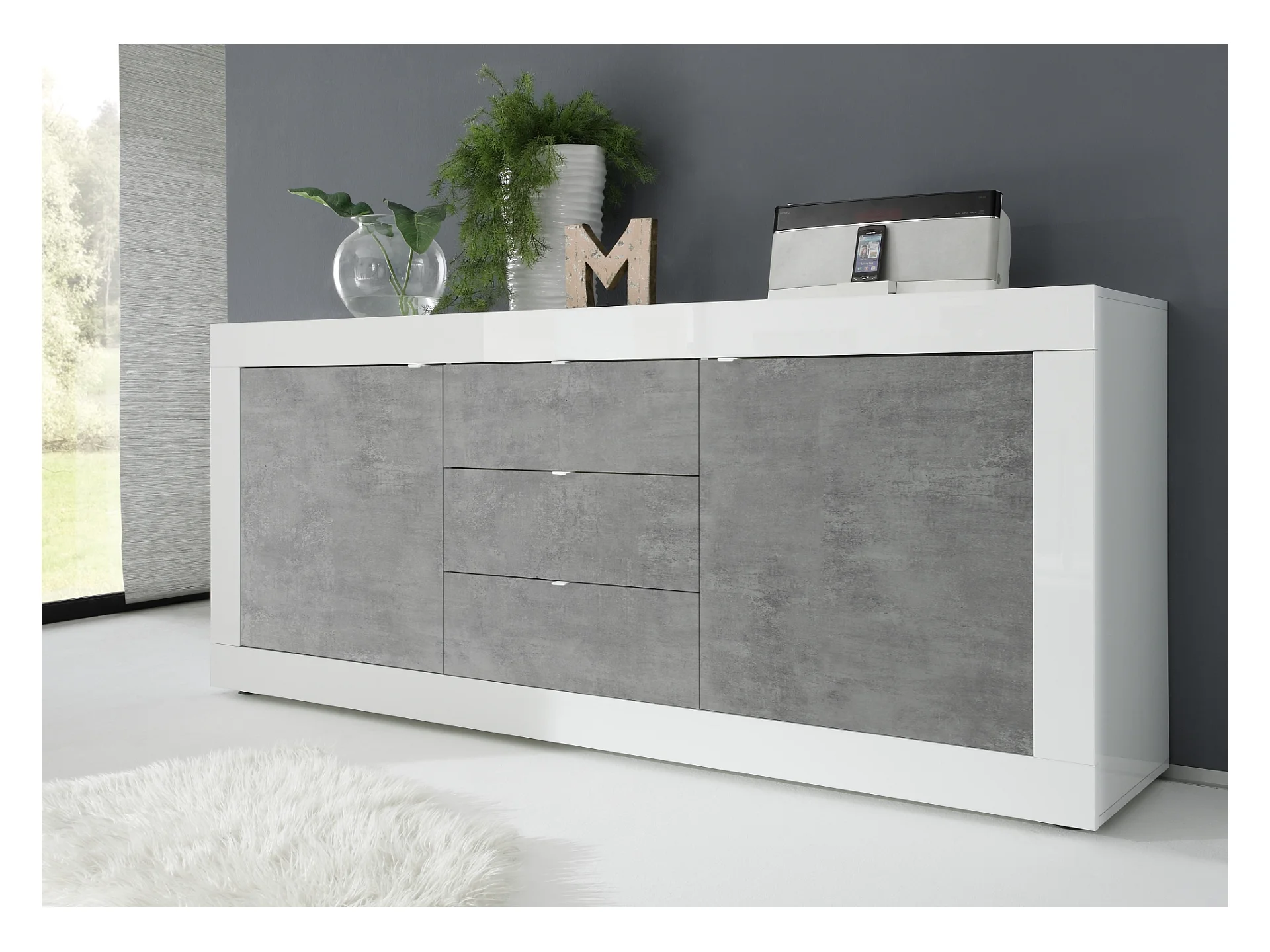 Madia moderna con tre cassetti e due ante per soggiorno design moderno 210x86 ML5 bianco e cemento