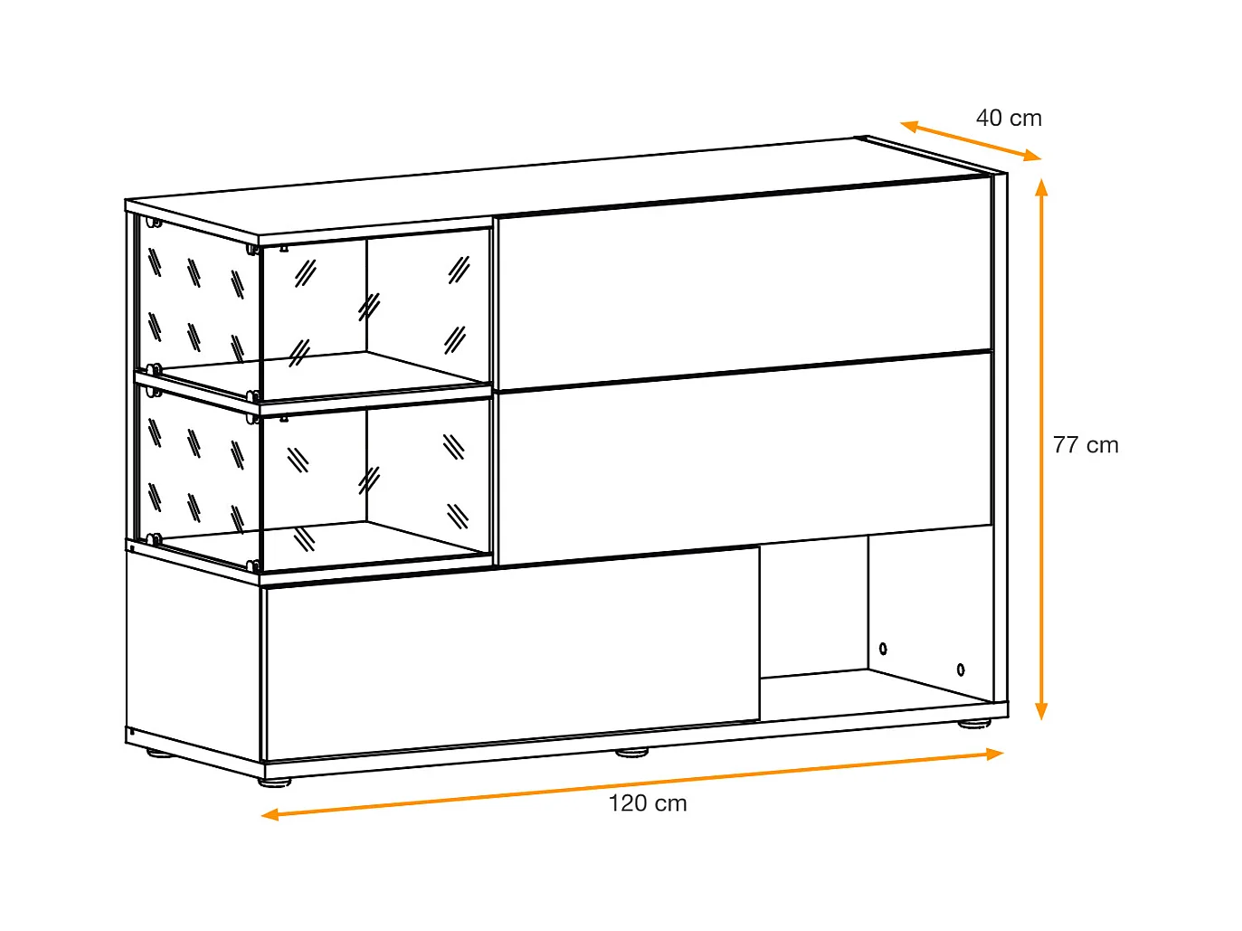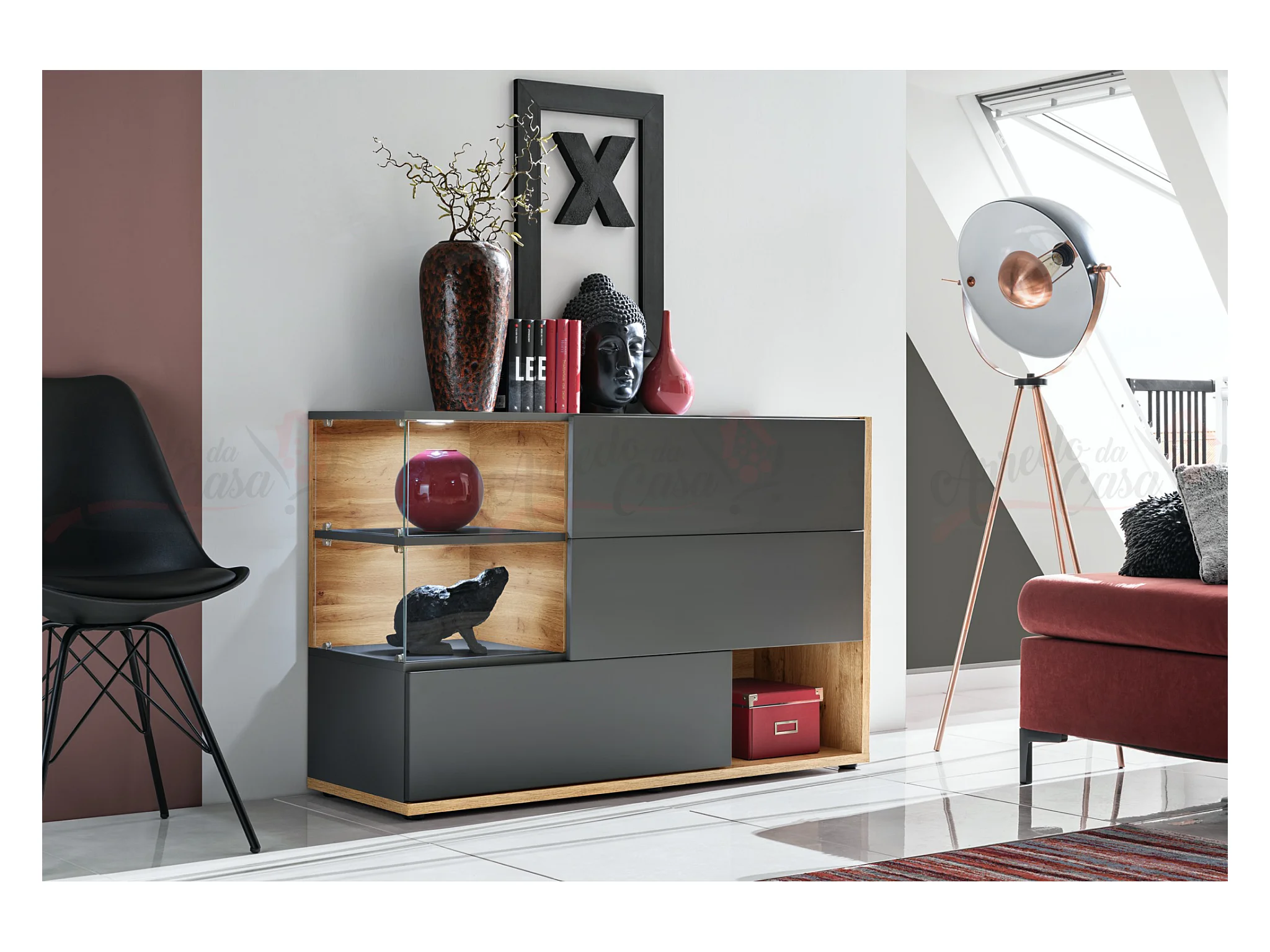 Madia moderna da sala con tre cassetti 120x89 rovere naturale e antracite lucido MI1