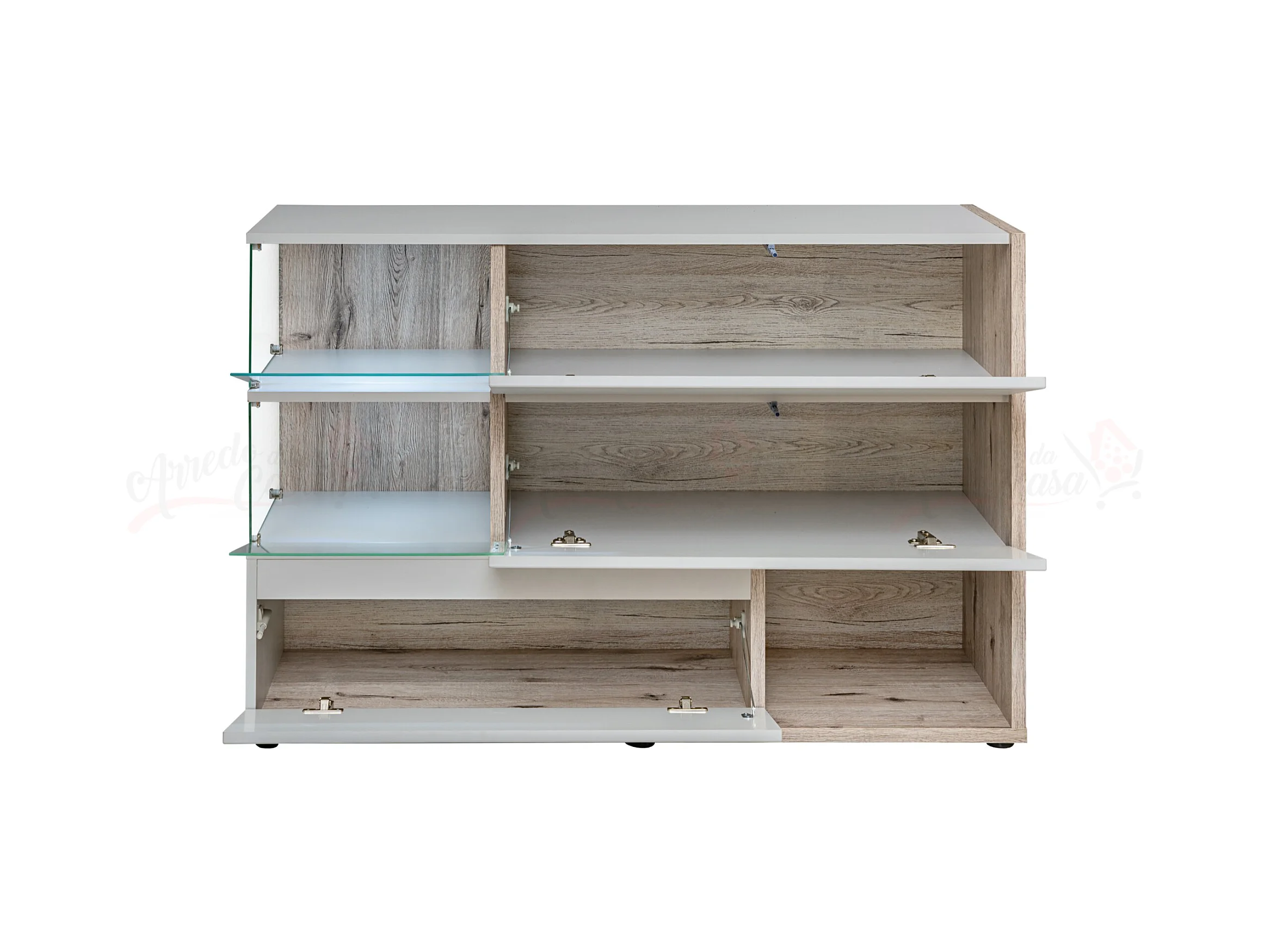 Madia piccola design moderno con due ante battenti e ripiano da living 108x93 ML20 bianco e cemento