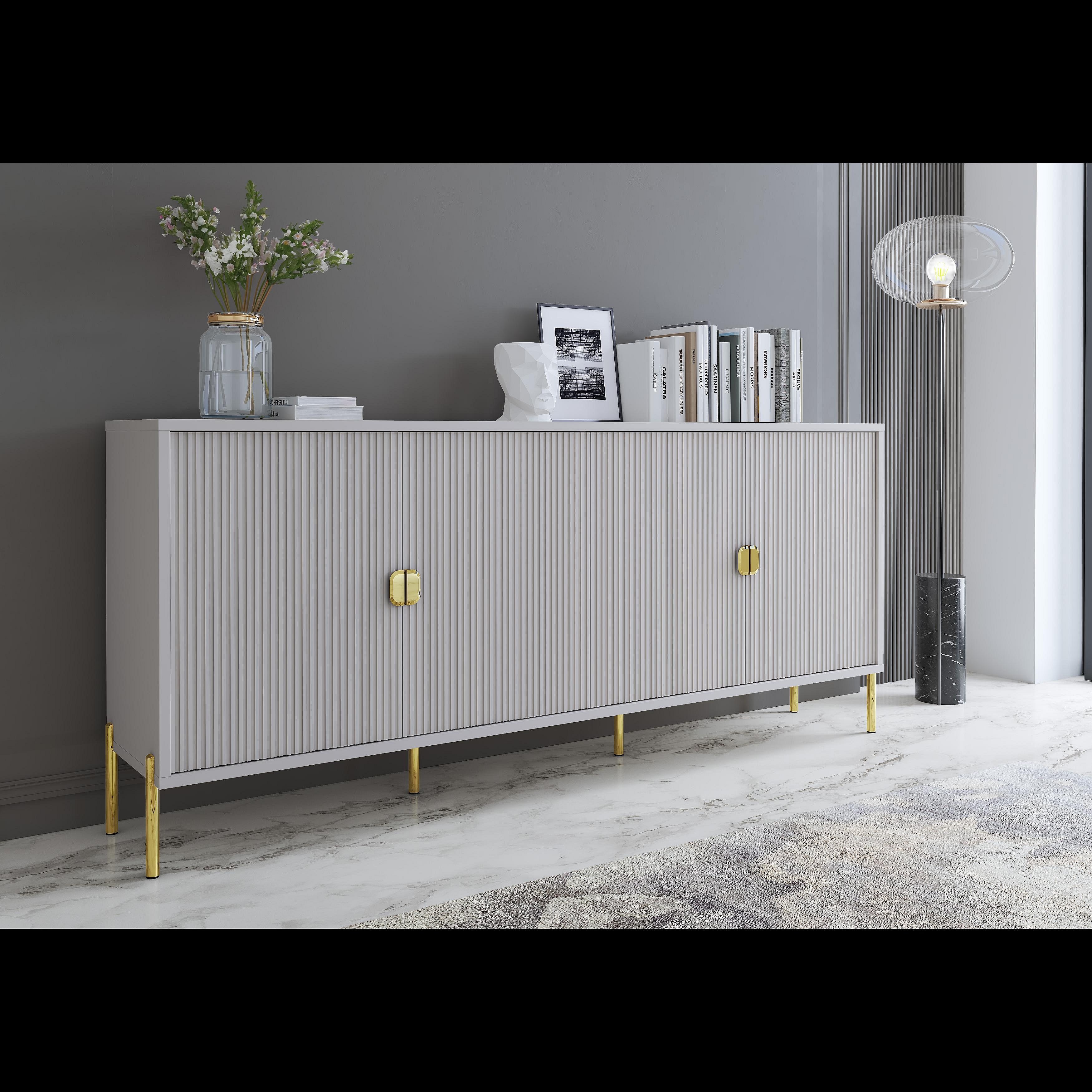 Madia Moderna Credenza In Melaminico Opaco Con 4 Ante E Piedini Alti Mobile Contenitore Design Soggiorno Salotto Sala Pranzo 203 x 49 x 87 Cm Grigio