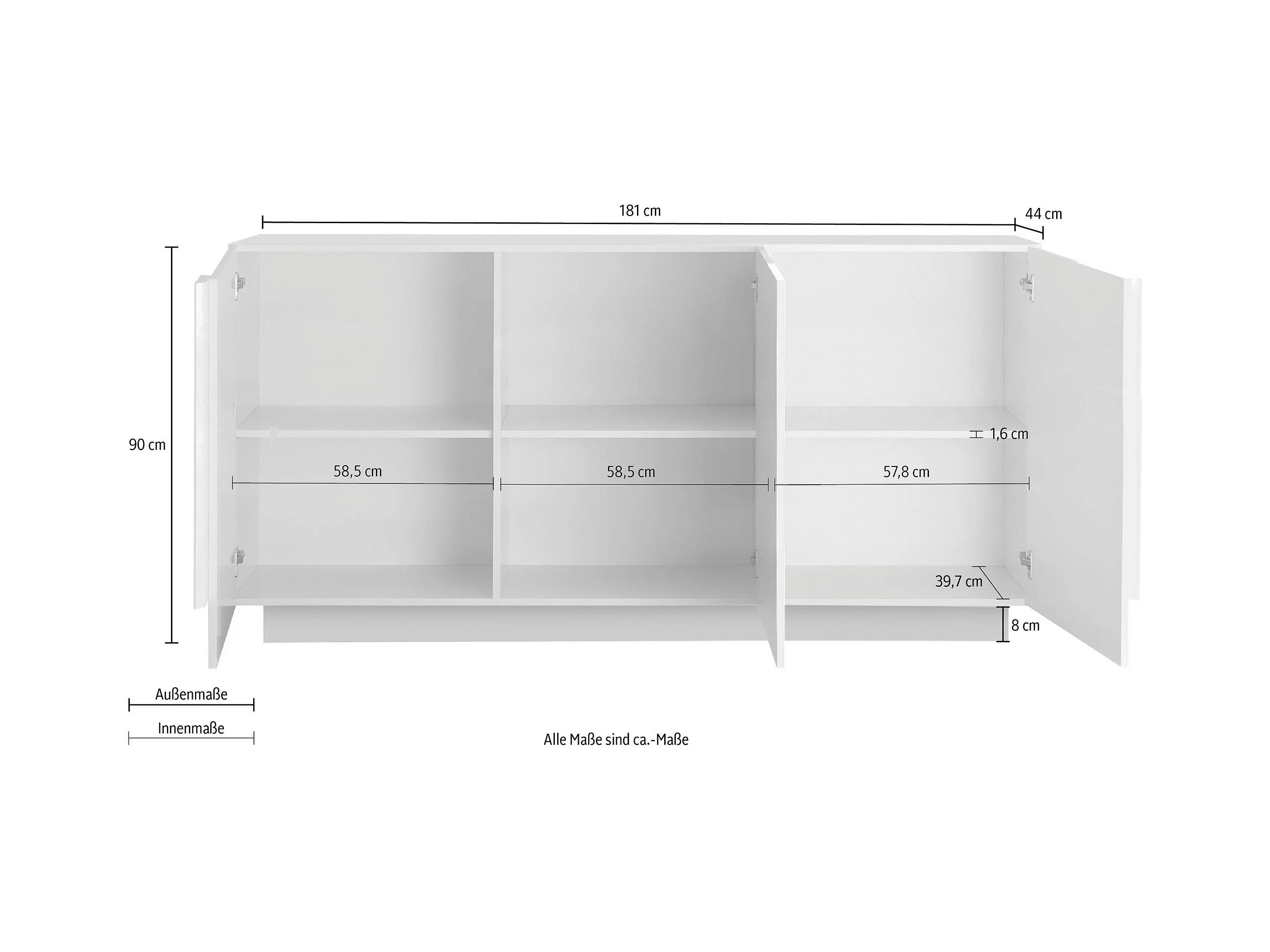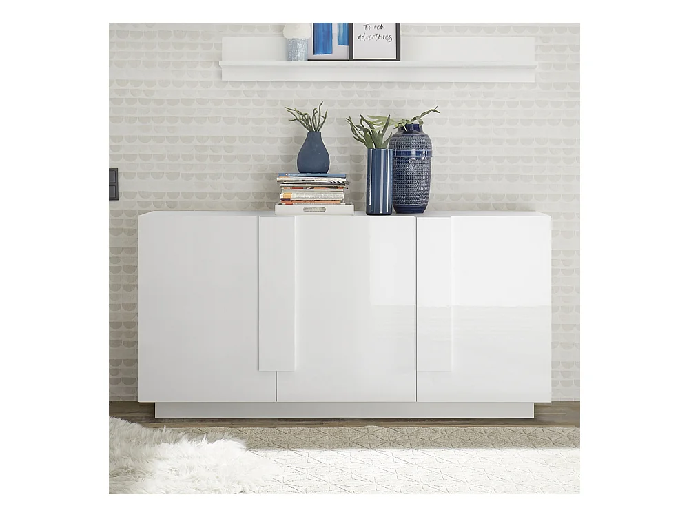 Madia moderna da living con tre ante battenti e maniglia rettangolare 181x90 ML27 bianco lucido