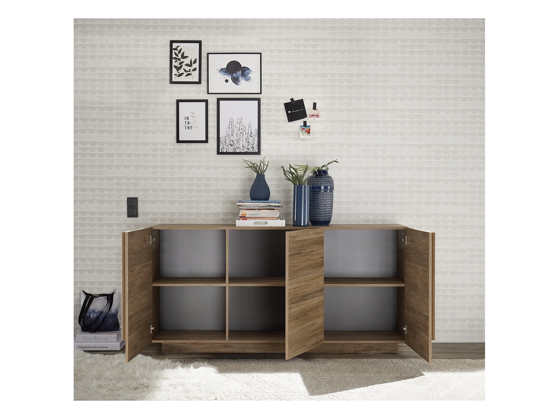 Madia da soggiorno 4 ante 211x88 cm bianco effetto legno e rovere ML59